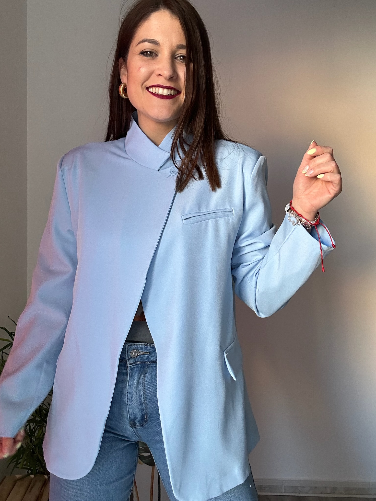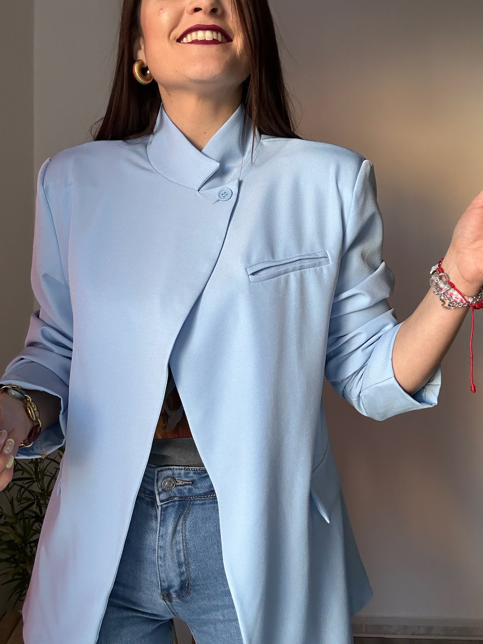 La blazer de mujer multiposición de La Boutique de Virgo es una prenda imprescindible para quienes buscan elegancia y versatilidad en su armario. Su diseño permite llevarla de diferentes formas: puedes lucirla cerrada con botón para un look más sofisticado o abierta, consiguiendo el estilo clásico de blazer que nunca pasa de moda.