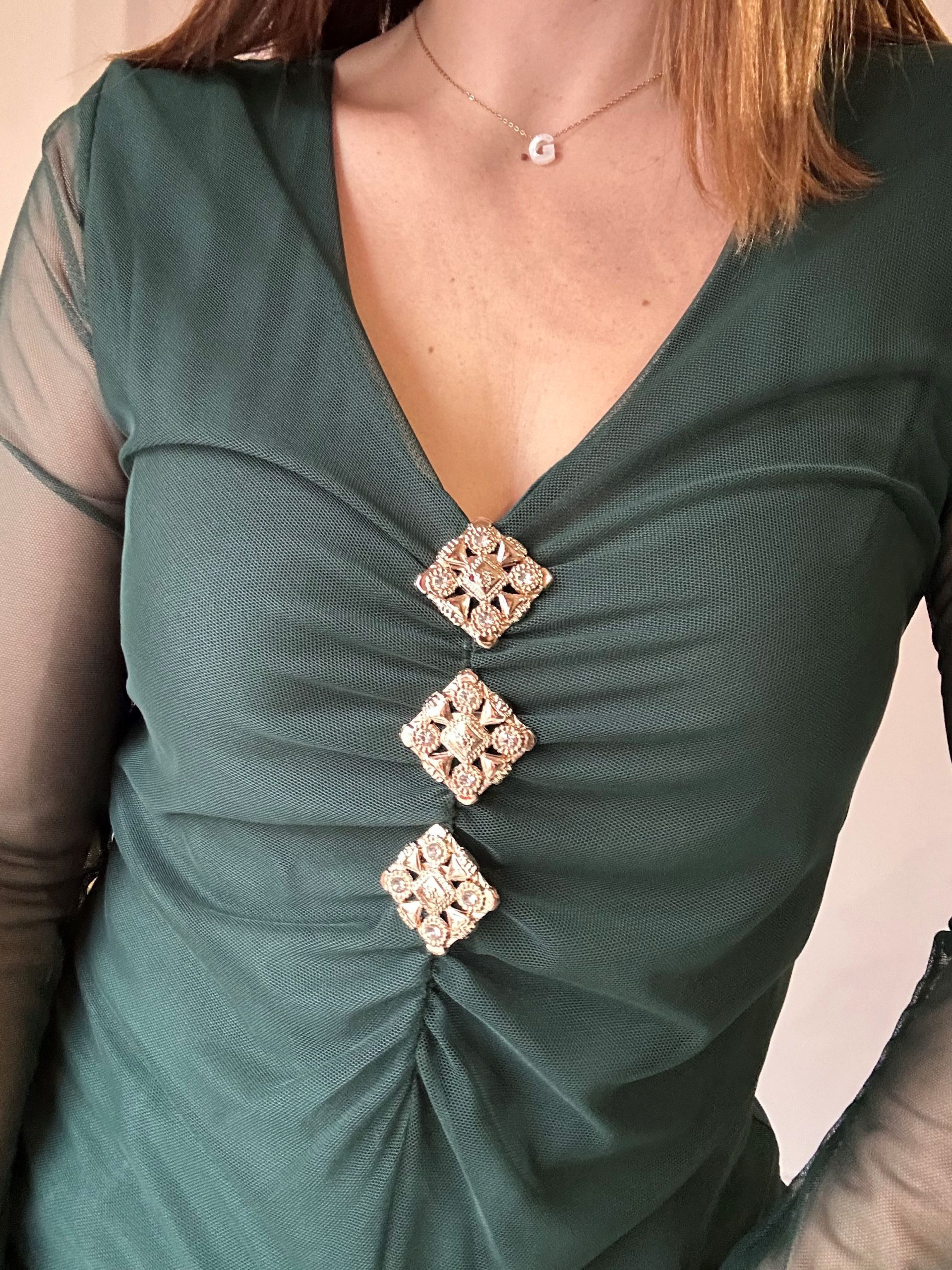 El cuello rizado y los puños rizados son detalles que refuerzan su estilo romántico, aportando un acabado delicado y sofisticado. Estos elementos añaden movimiento y textura a la prenda, creando un diseño cuidado que realza la feminidad sin resultar recargado.