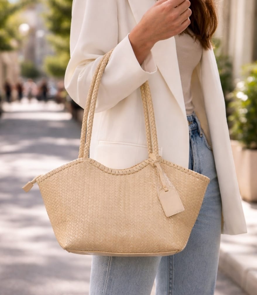 El bolso grande trenzado en color crema de La Boutique de Virgo es la combinación perfecta de elegancia, funcionalidad y estilo atemporal. Su diseño trenzado aporta textura y sofisticación, convirtiéndolo en un accesorio imprescindible para elevar cualquier look, tanto casual como más cuidado.