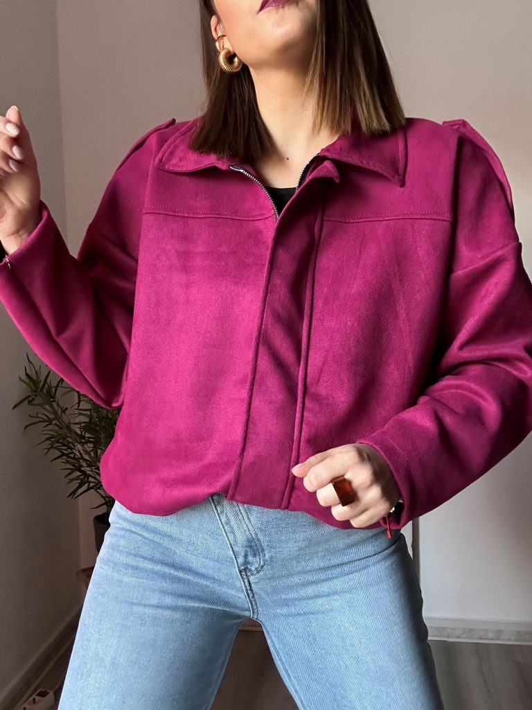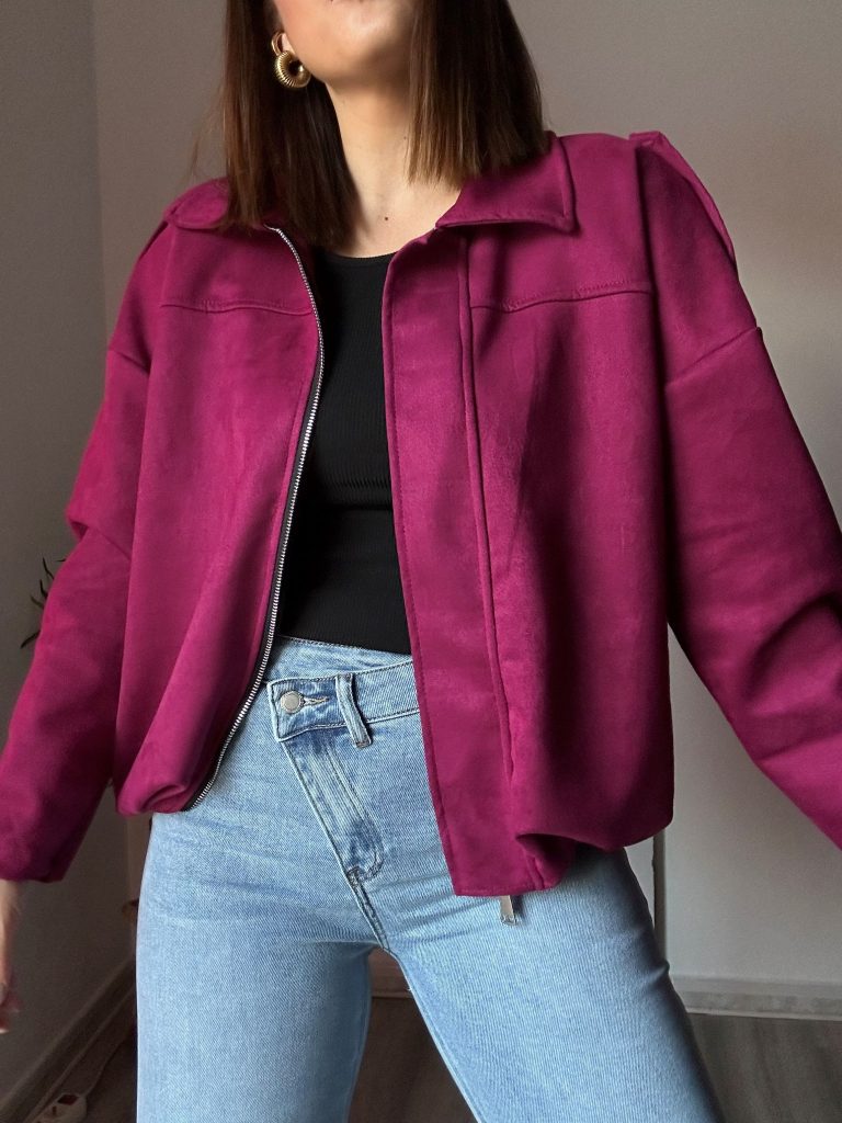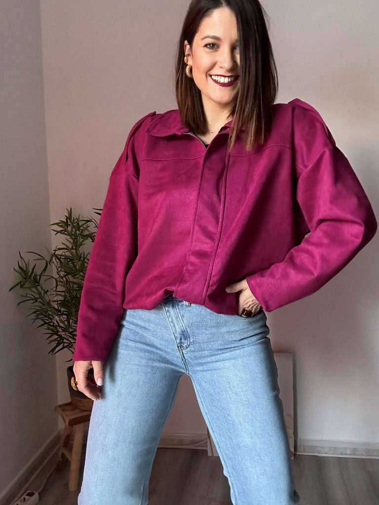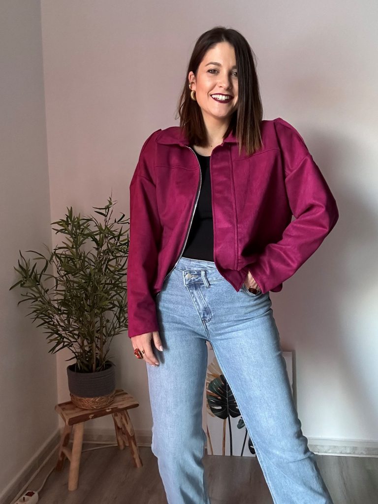 El tono vino aporta elegancia y sofisticación, convirtiéndola en una chaqueta versátil y fácil de combinar tanto con vaqueros, pantalones de corte recto, leggings o incluso vestidos, adaptándose a distintos estilos y ocasiones.