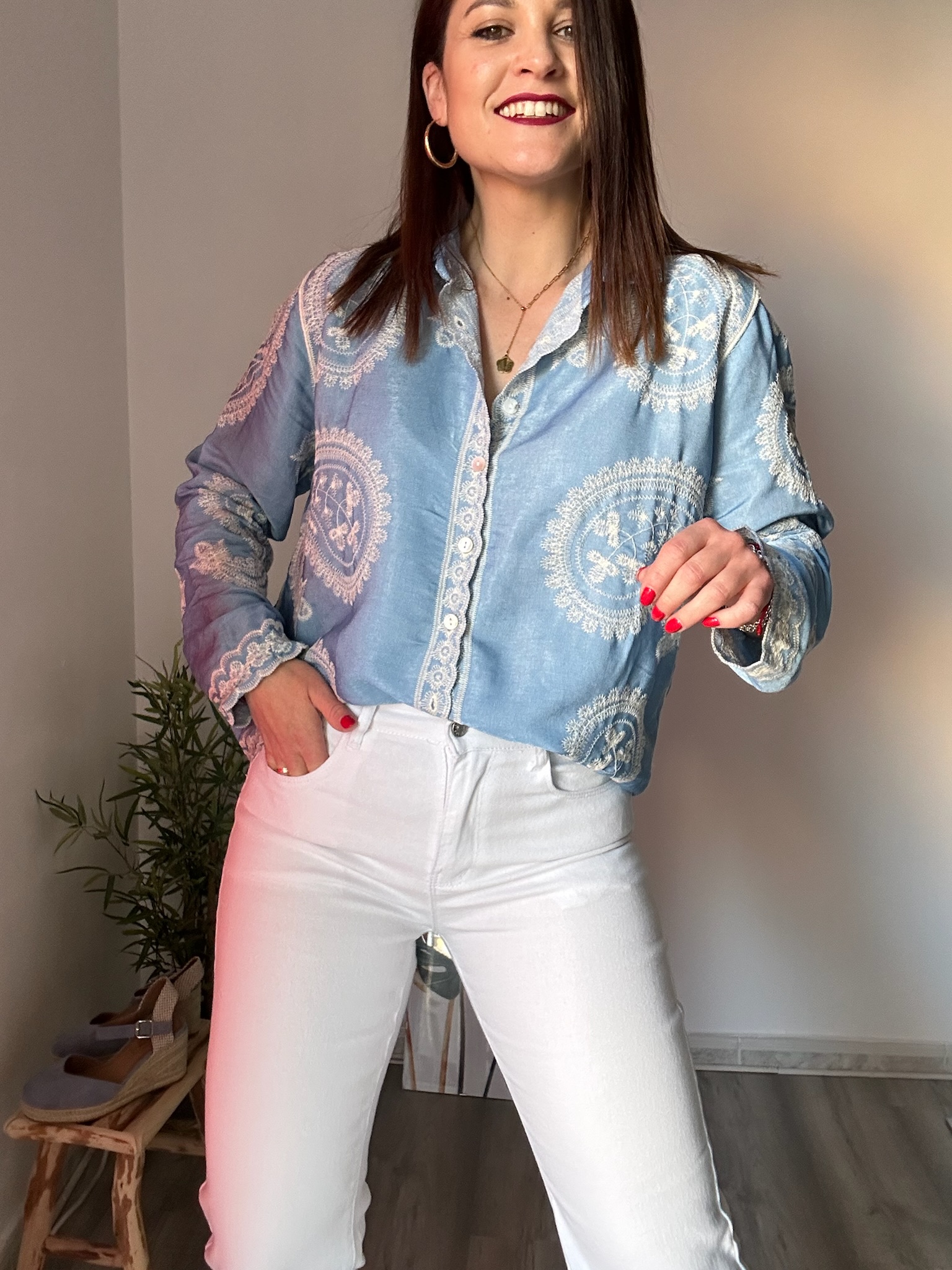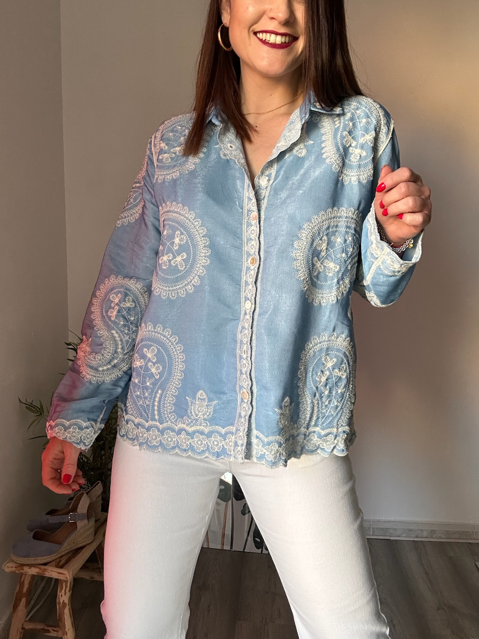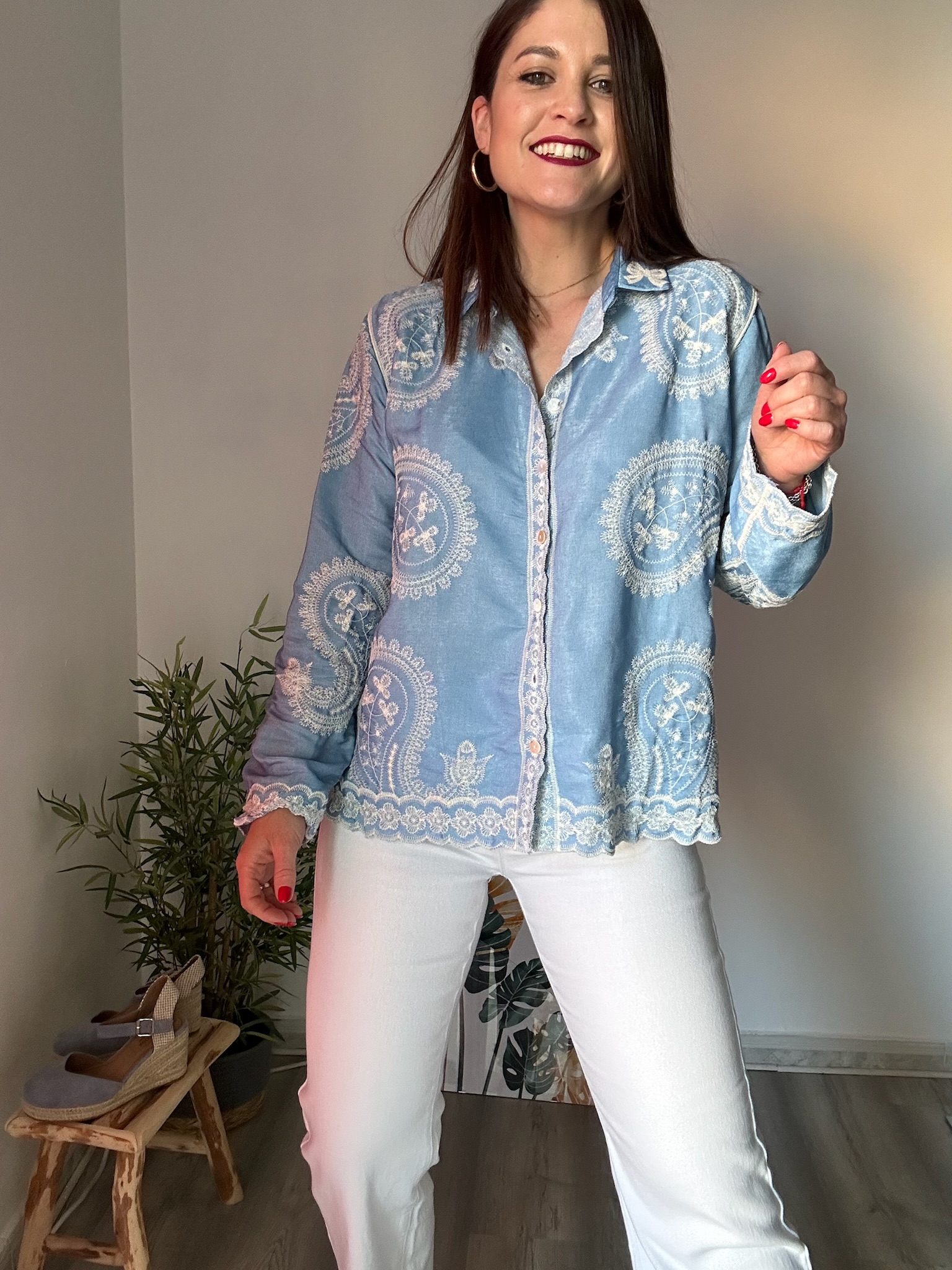 En La Boutique de Virgo, tanto en tienda física como online, apostamos por prendas que combinan estilo, calidad y versatilidad. Esta camisa azul cielo con bordados es perfecta para mujeres que buscan piezas especiales para su día a día sin complicaciones.