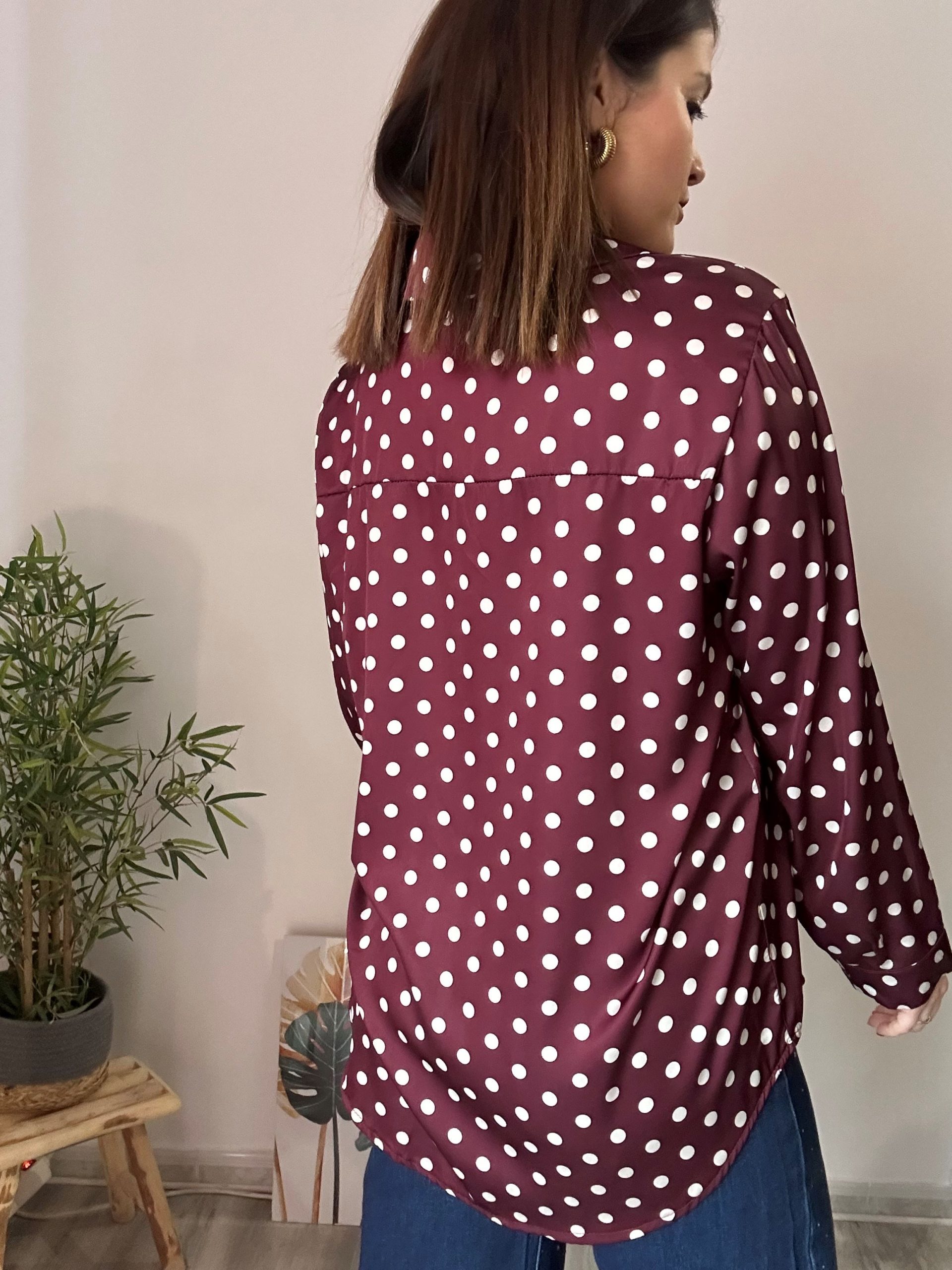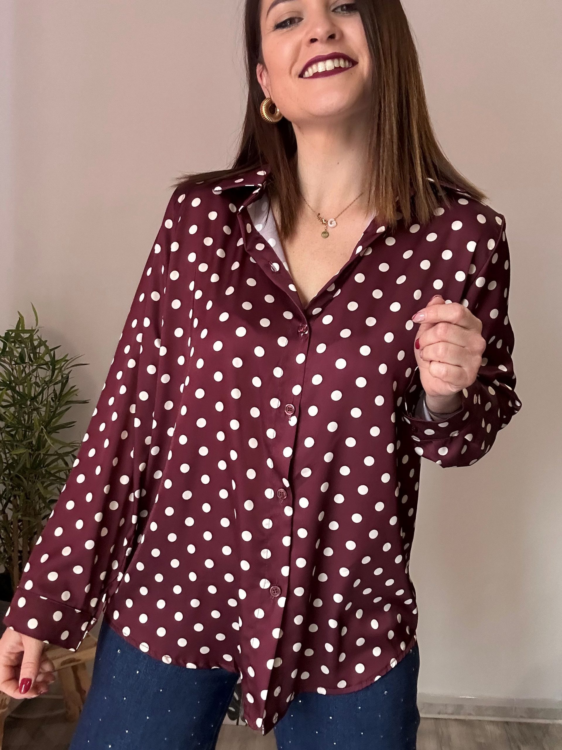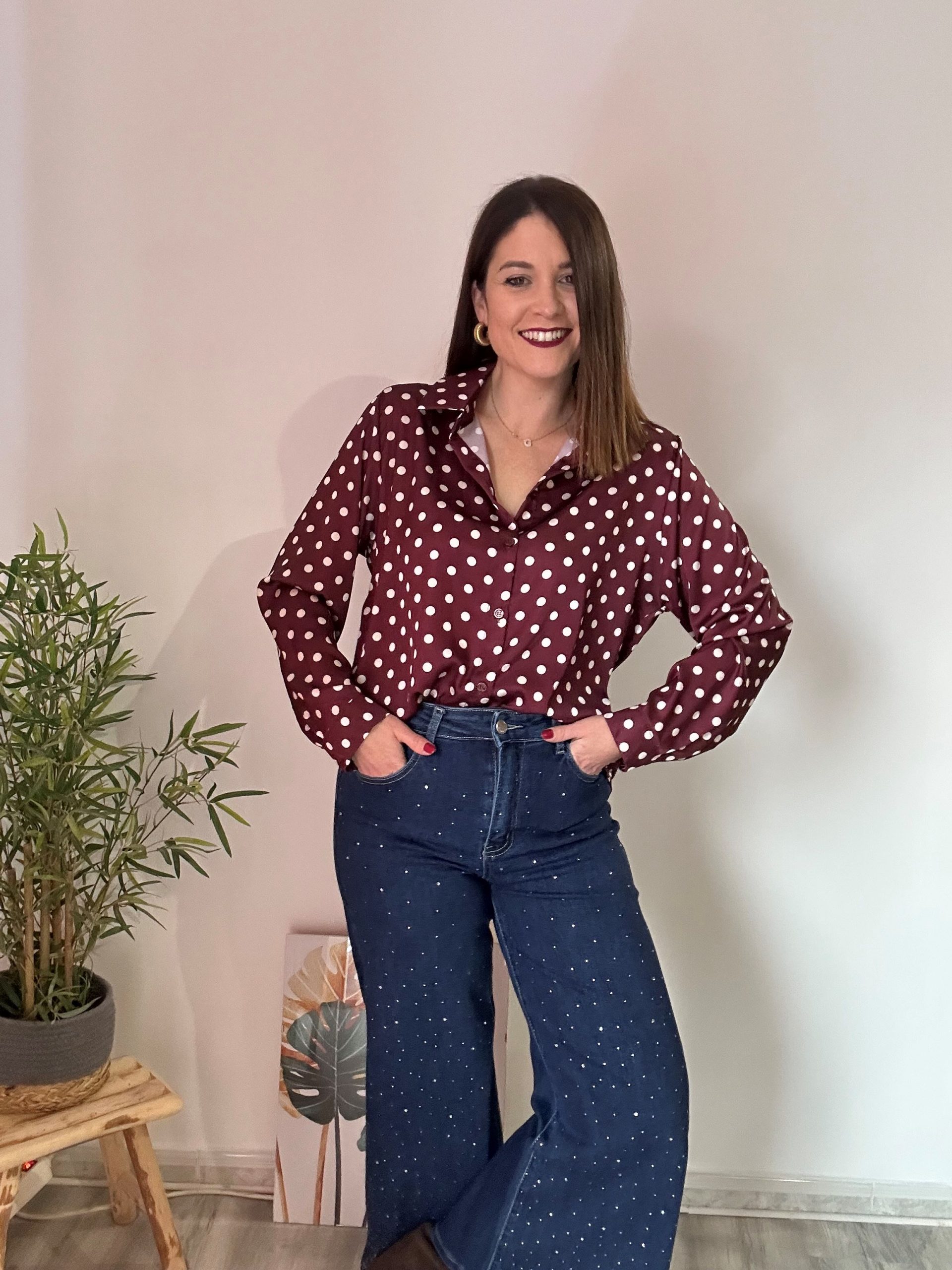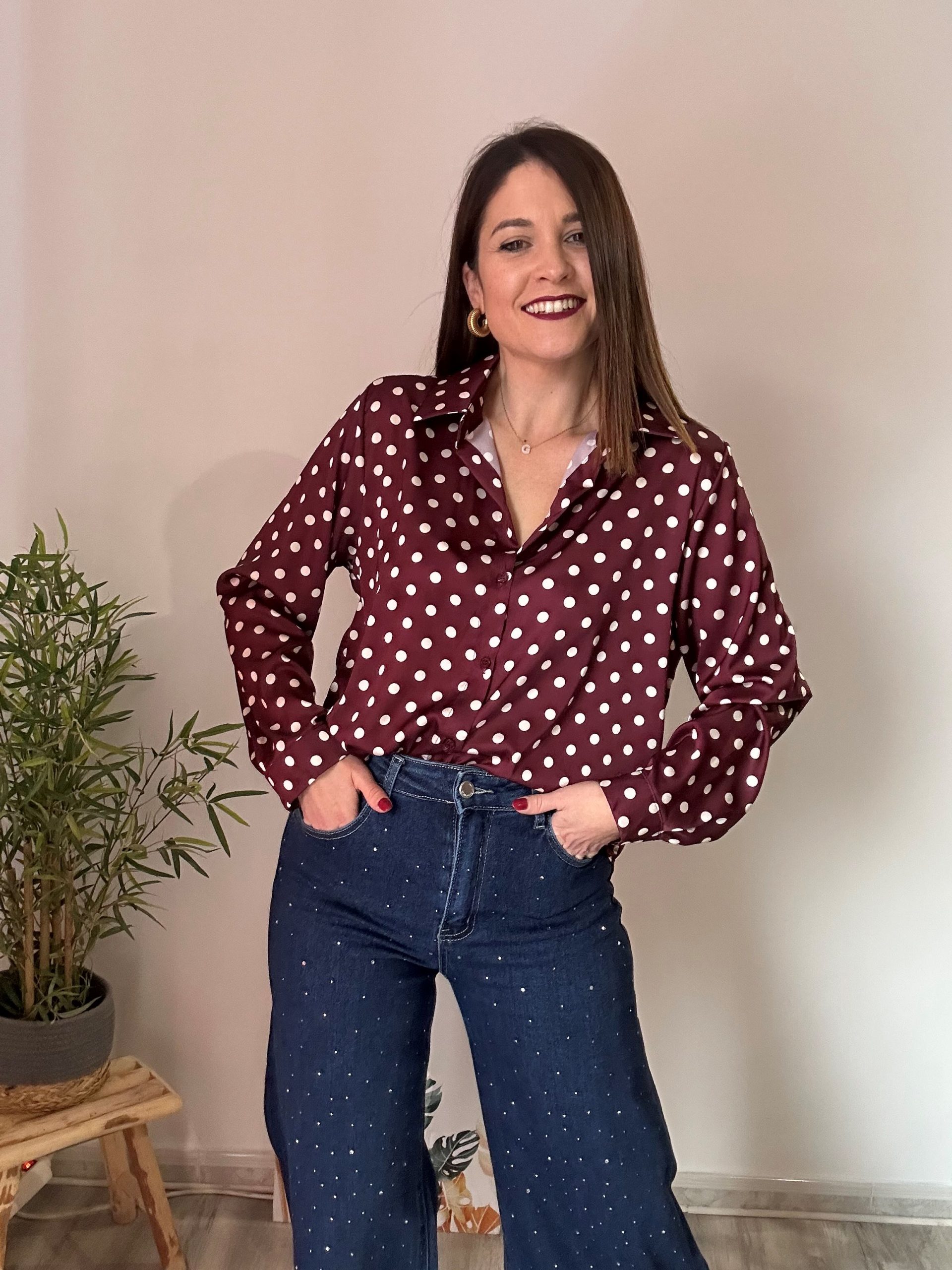 La camisa burdeos con lunares de La Boutique de Virgo es una prenda femenina y atemporal que combina a la perfección elegancia y comodidad. Su estampado de lunares aporta un toque clásico renovado, ideal para quienes buscan piezas con personalidad que nunca pasan de moda. El tono burdeos, sofisticado y fácil de combinar, convierte esta camisa en una opción perfecta tanto para el día a día como para ocasiones más especiales.