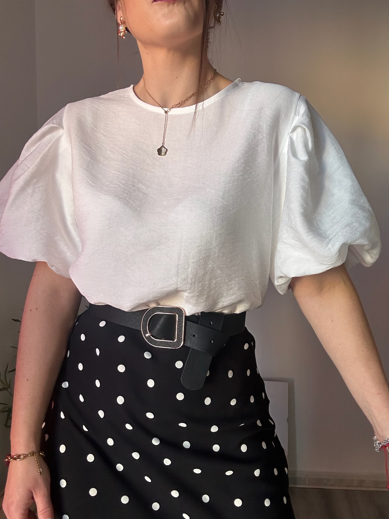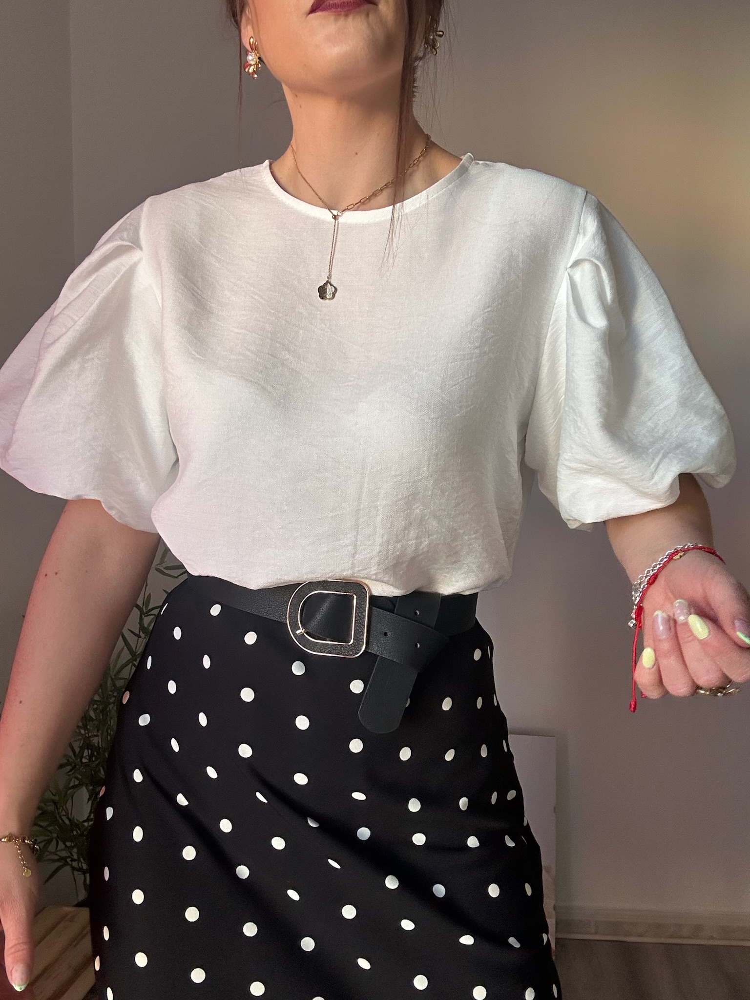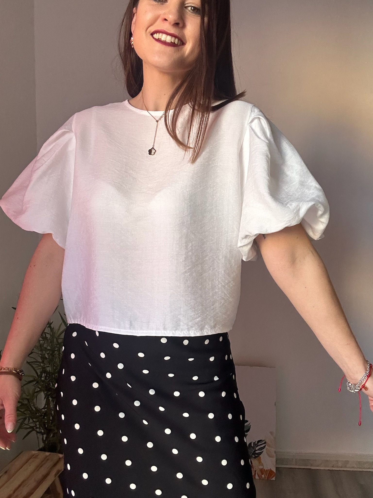 La camiseta de manga globo para mujer de La Boutique de Virgo es una prenda perfecta para aportar un toque de estilo y originalidad a cualquier look. Su diseño destaca por las mangas con volumen, que añaden un aire sofisticado y femenino, convirtiéndola en una opción ideal tanto para el día a día como para ocasiones especiales.