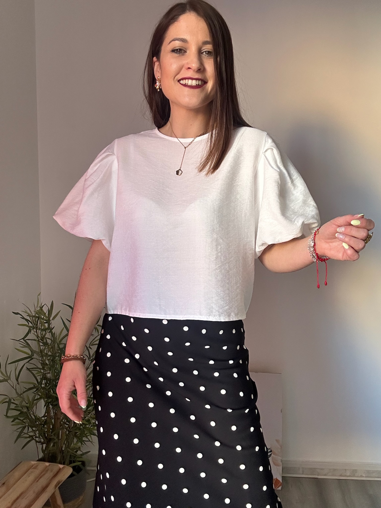 Ideal para cualquier temporada, esta camiseta de manga globo se convertirá en un básico con personalidad dentro de tu armario. Si buscas una prenda cómoda, elegante y con un diseño especial, esta opción es perfecta para completar tus outfits con un toque actual.