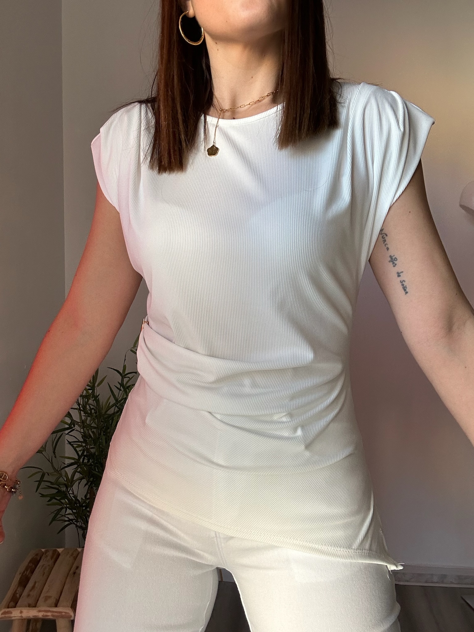 Esta camiseta de canalé asimétrica es una apuesta segura para mujeres que buscan una prenda cómoda, versátil y con un toque elegante que marque la diferencia en su armario.