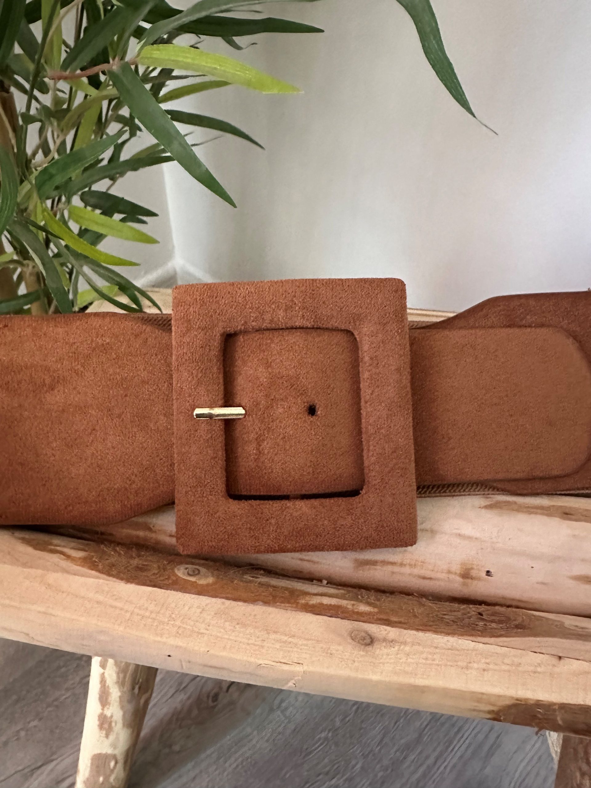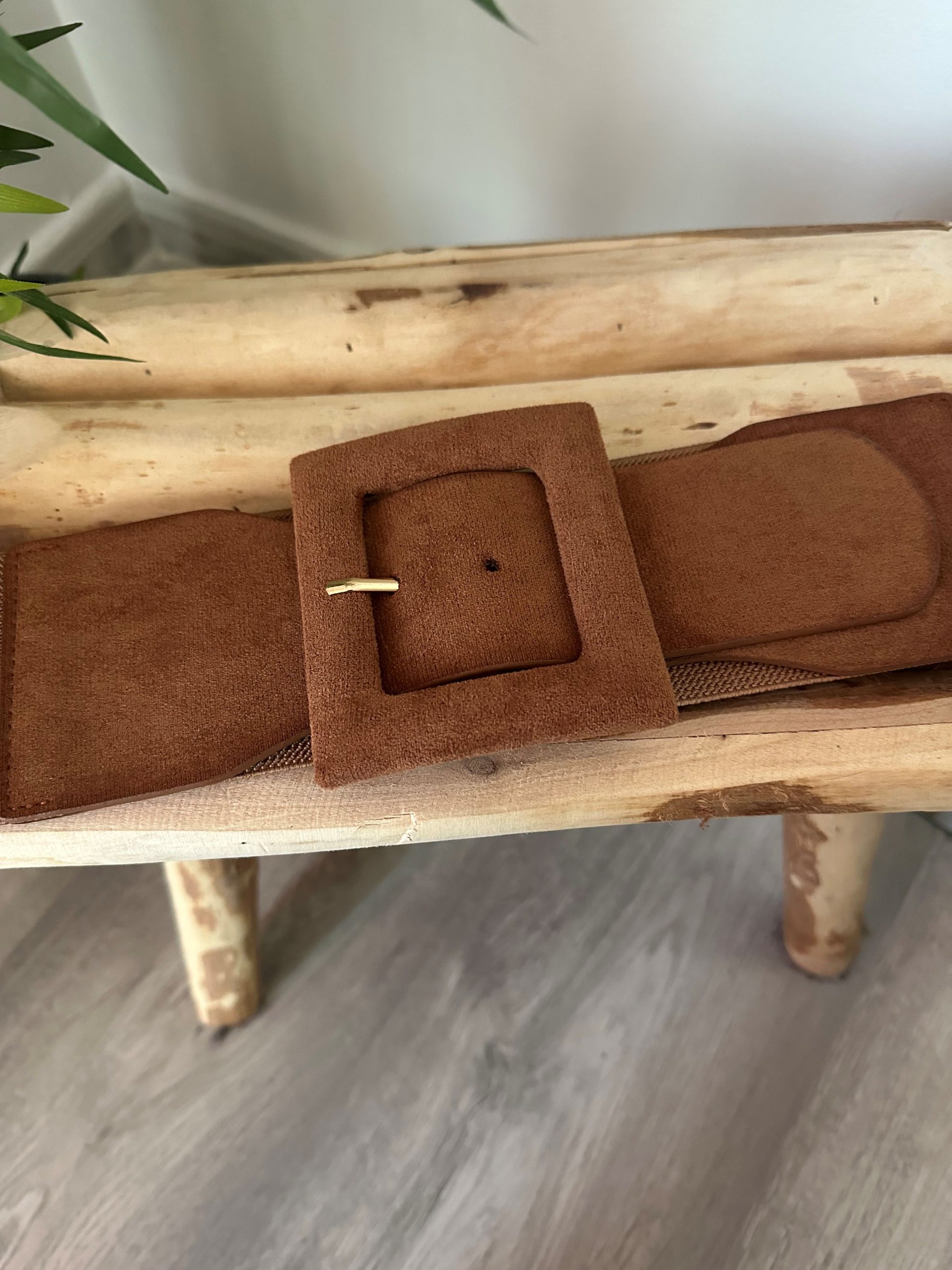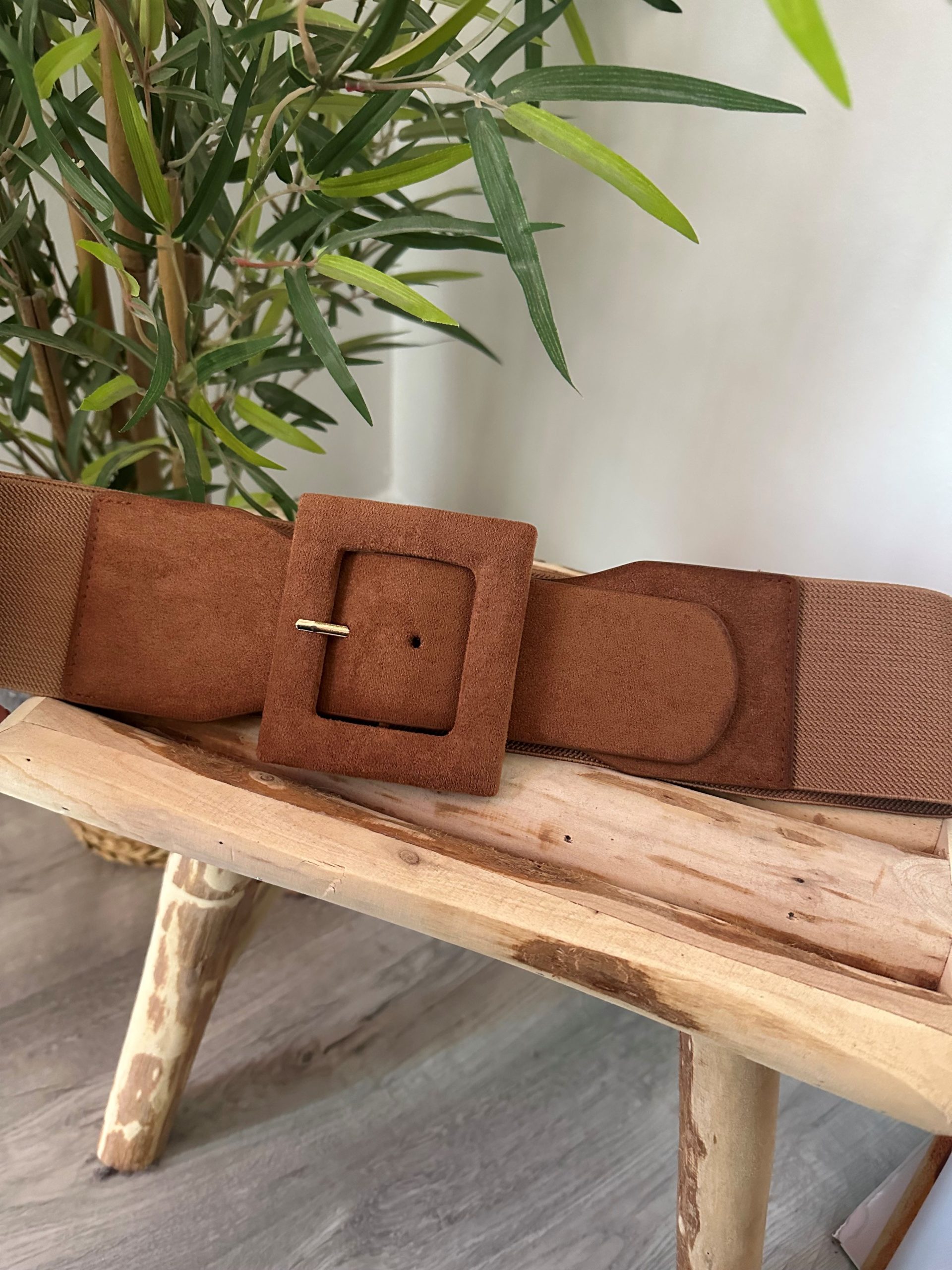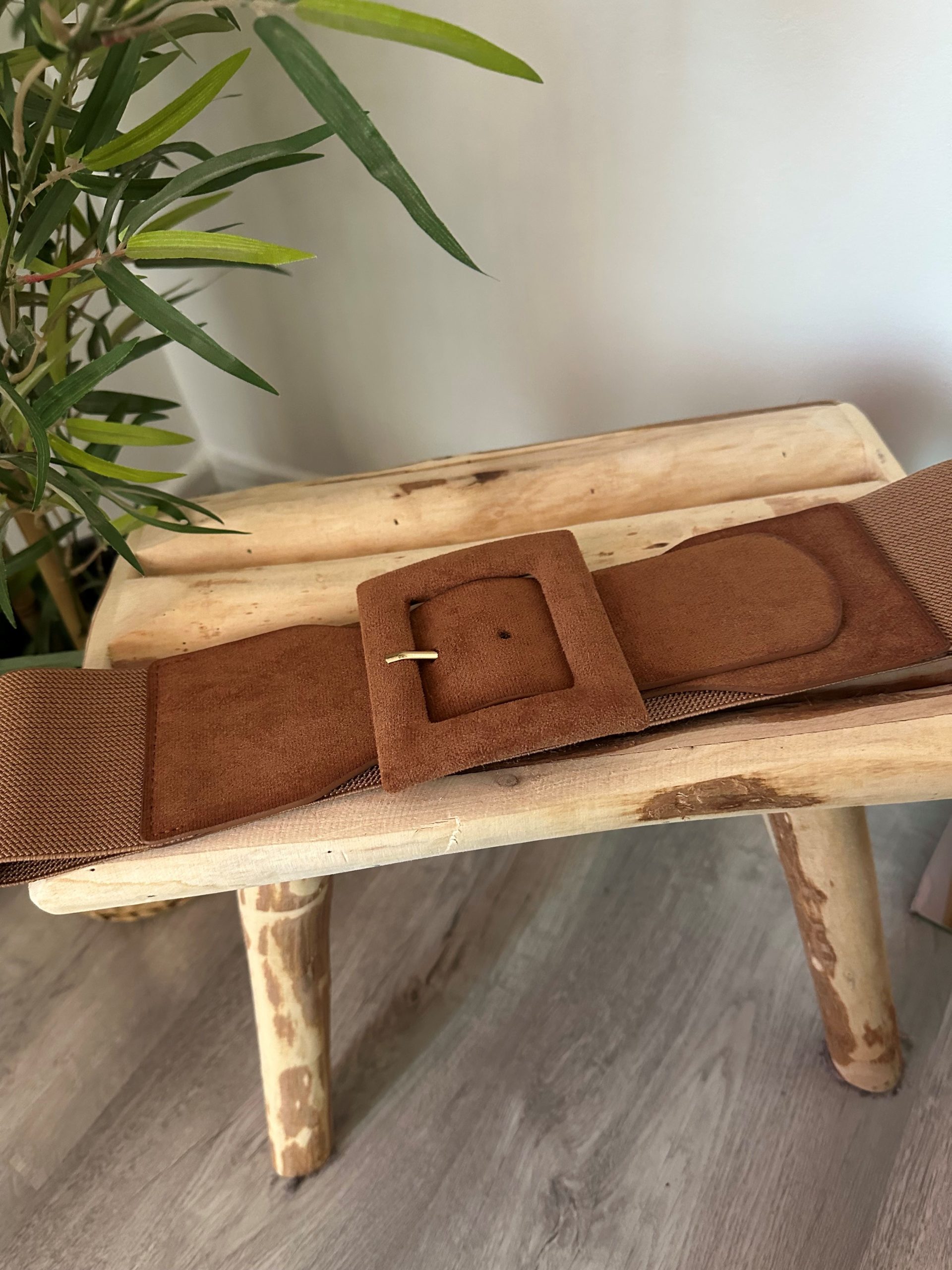 Cinturón ante marrón con elástico para asegurar su comodidad.