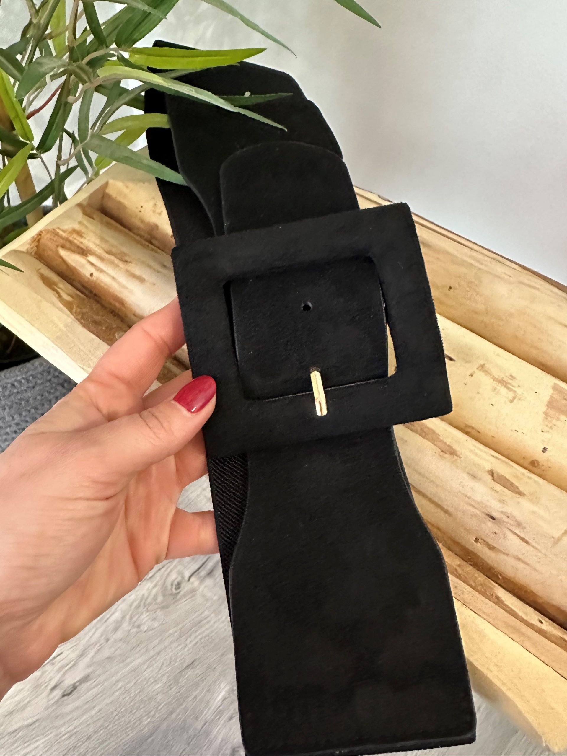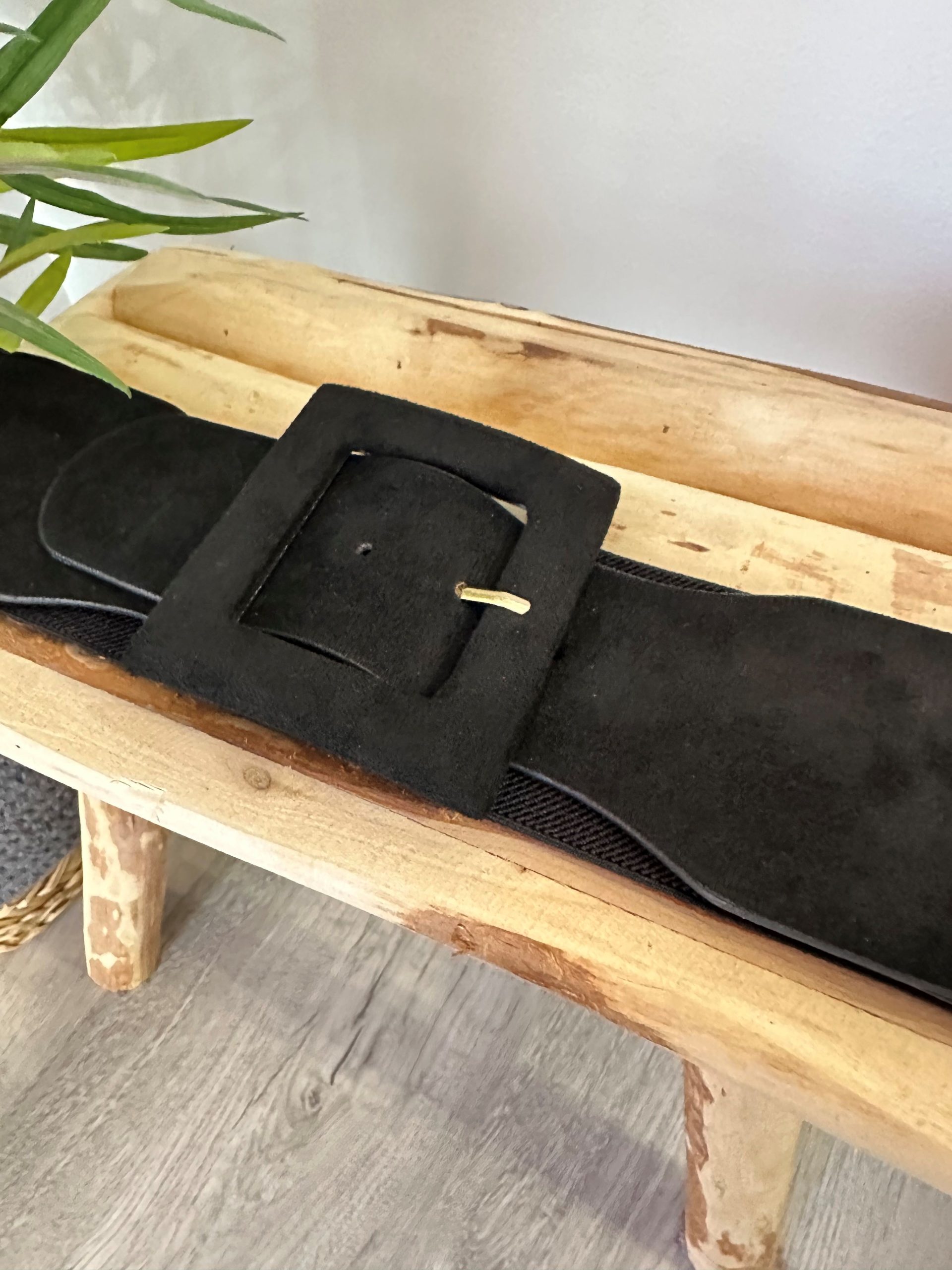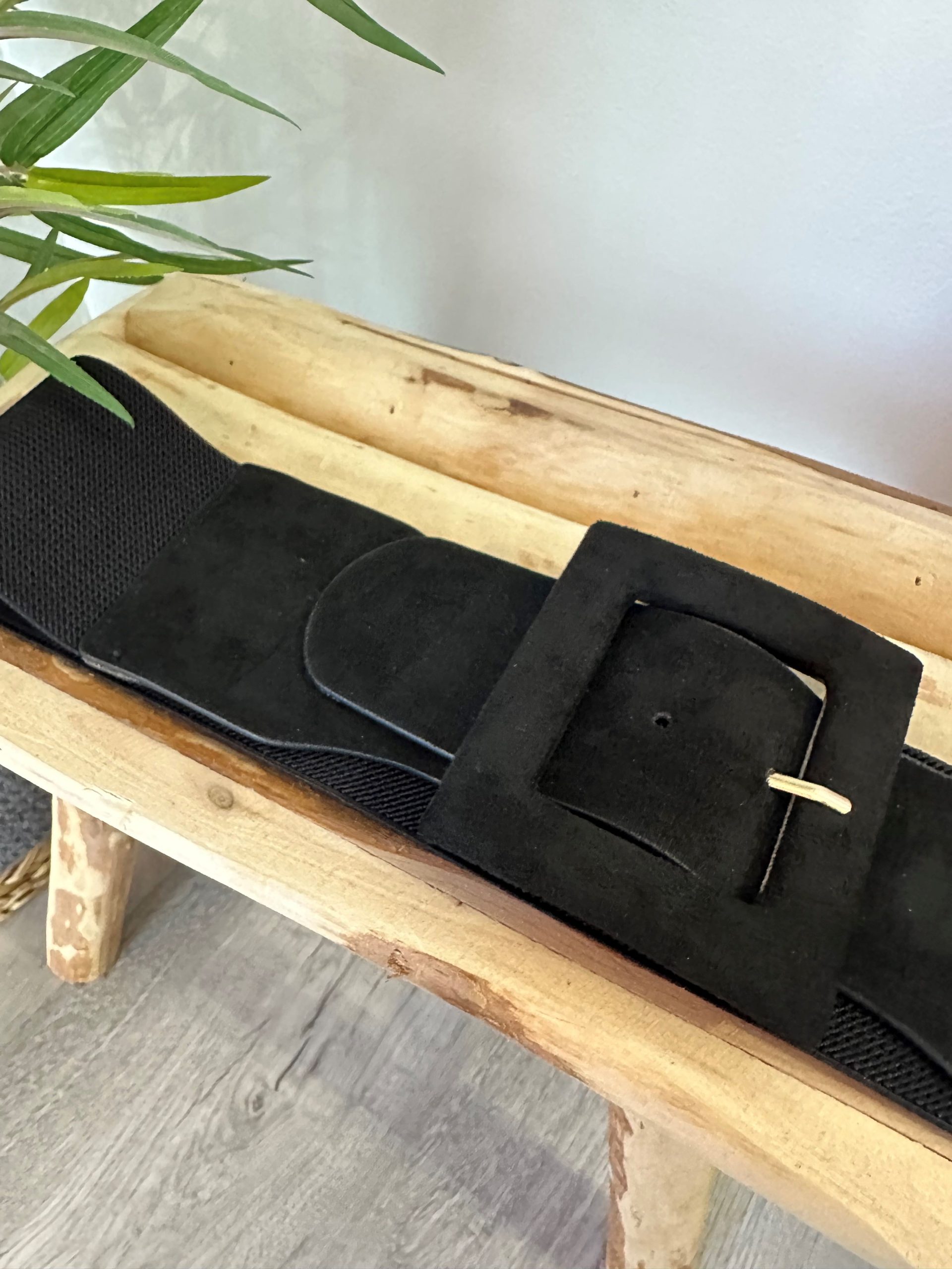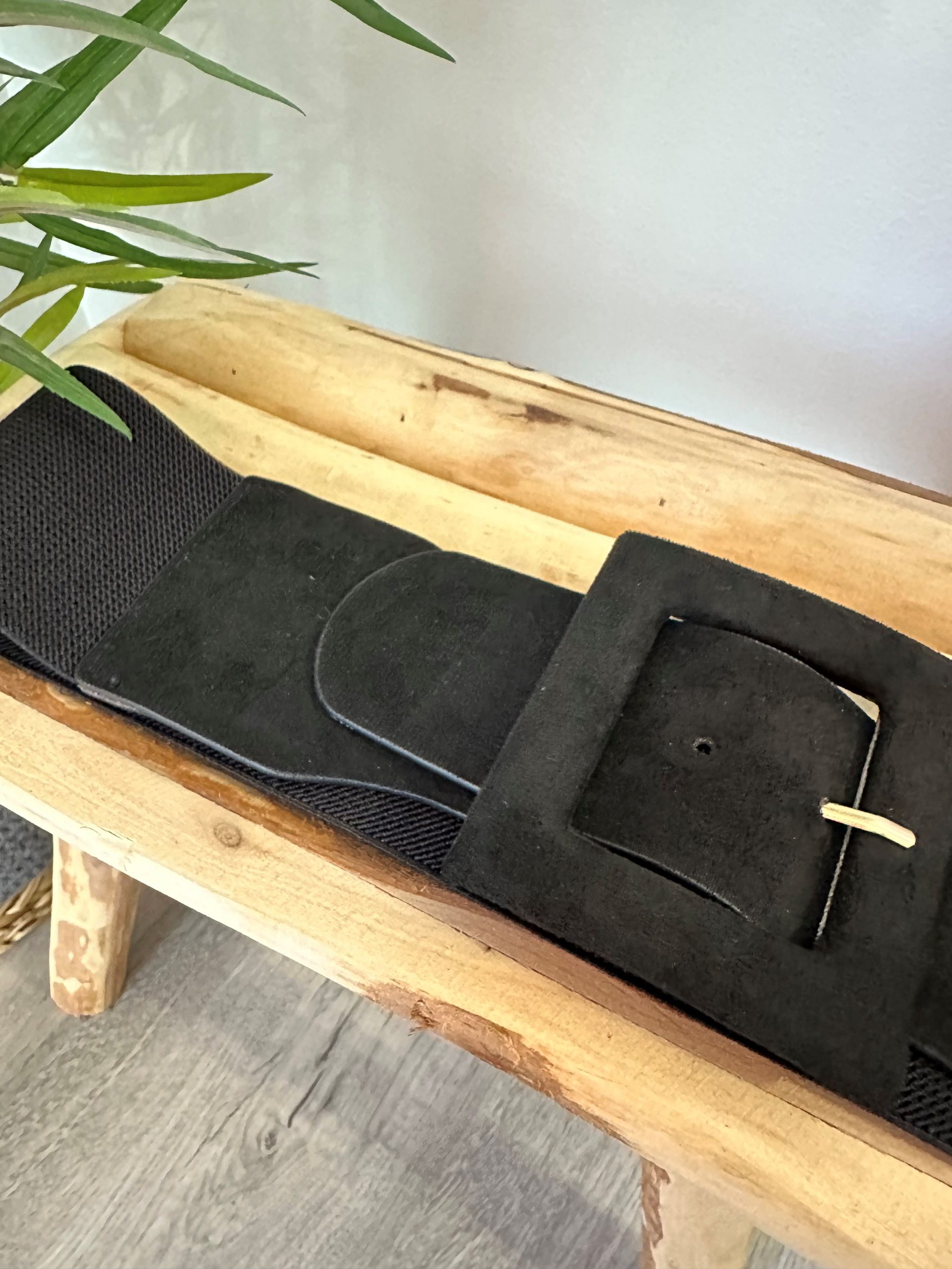 Cinturón ante negro con elástico para asegurar su comodidad.