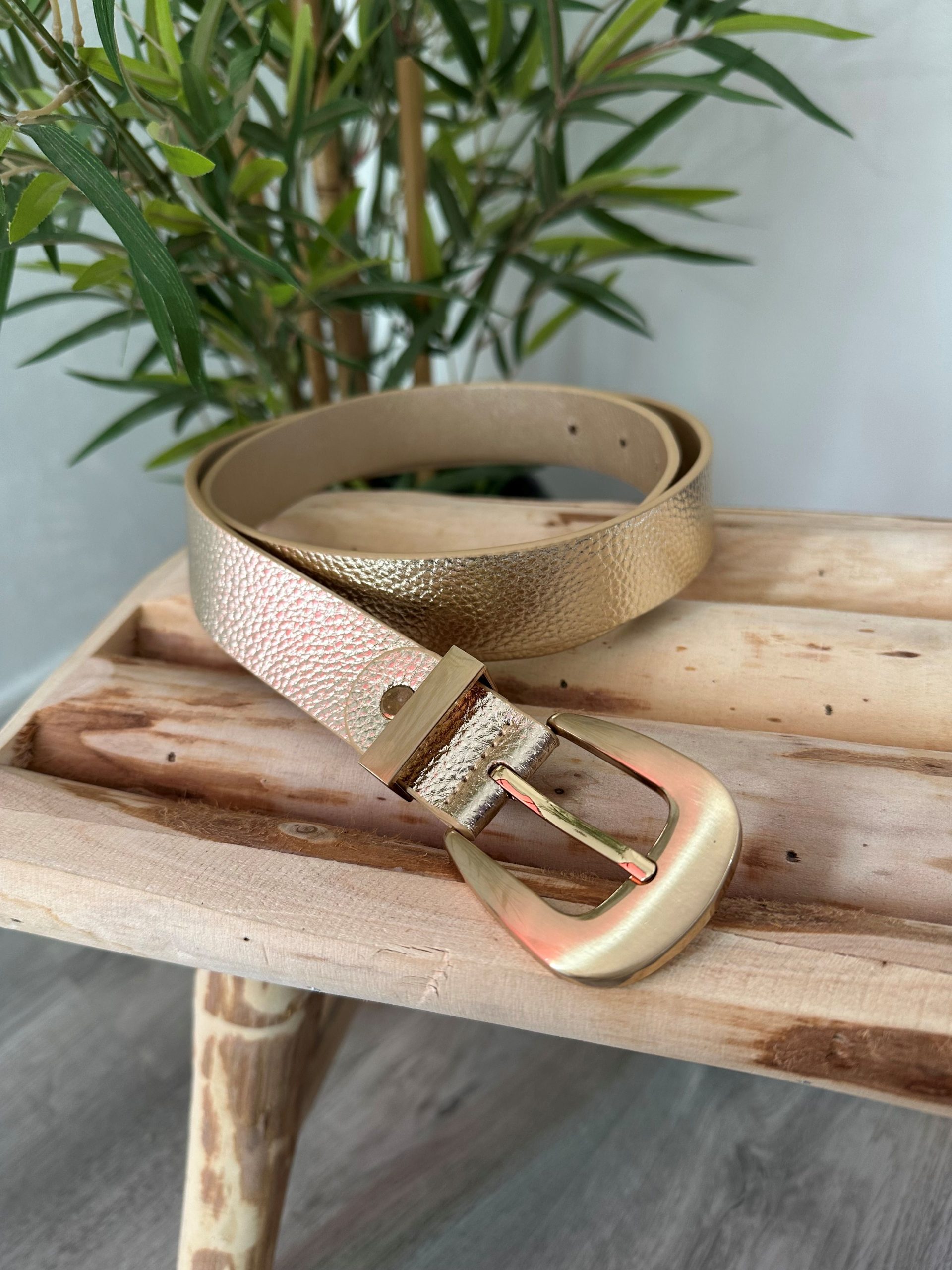El cinturón dorado es el complemento perfecto para aportar un toque especial y femenino a cualquier look. Su diseño elegante combina la delicadeza con el brillo sofisticado del acabado dorado, convirtiéndolo en un accesorio ideal para realzar diferentes estilos.