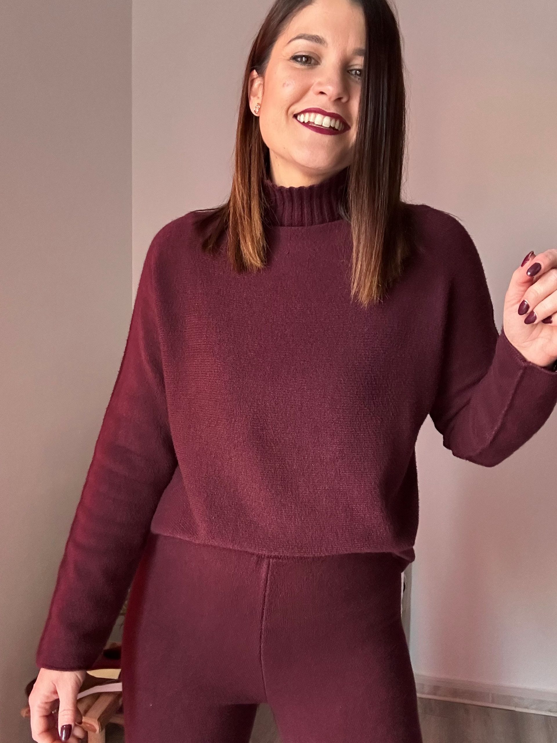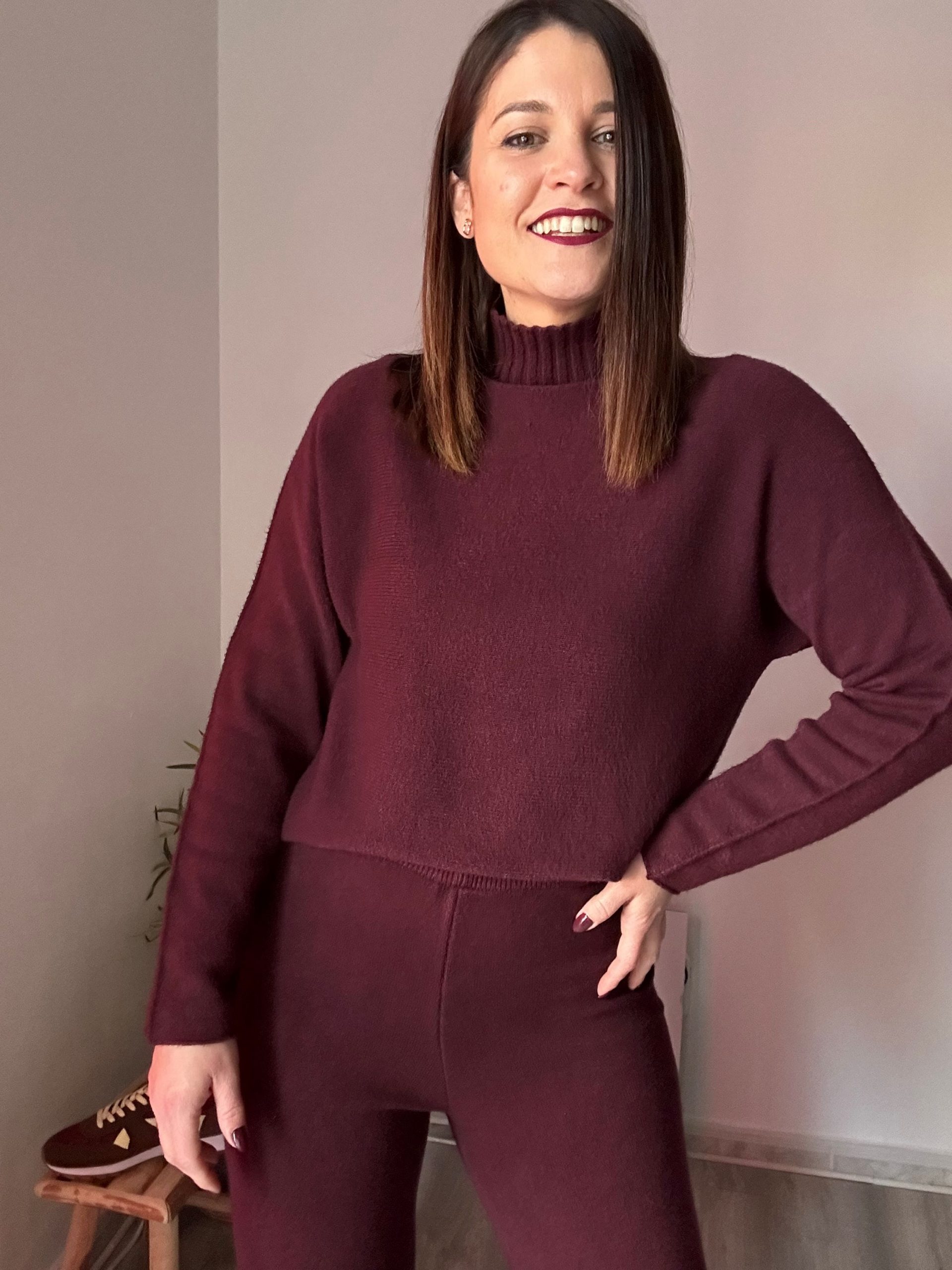 Estos conjuntos están confeccionados en un tejido de punto suave y muy gustoso, perfecto para los meses más frescos. Su tacto calentito aporta confort desde el primer momento, convirtiéndolos en una opción imprescindible para tu fondo de armario. El jersey con cuello chimenea añade un toque moderno y elegante, además de proteger del frío sin necesidad de complementos extra.