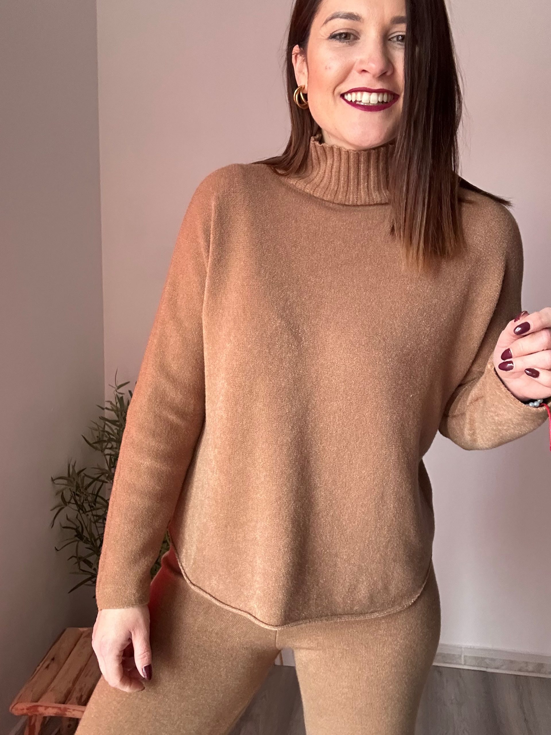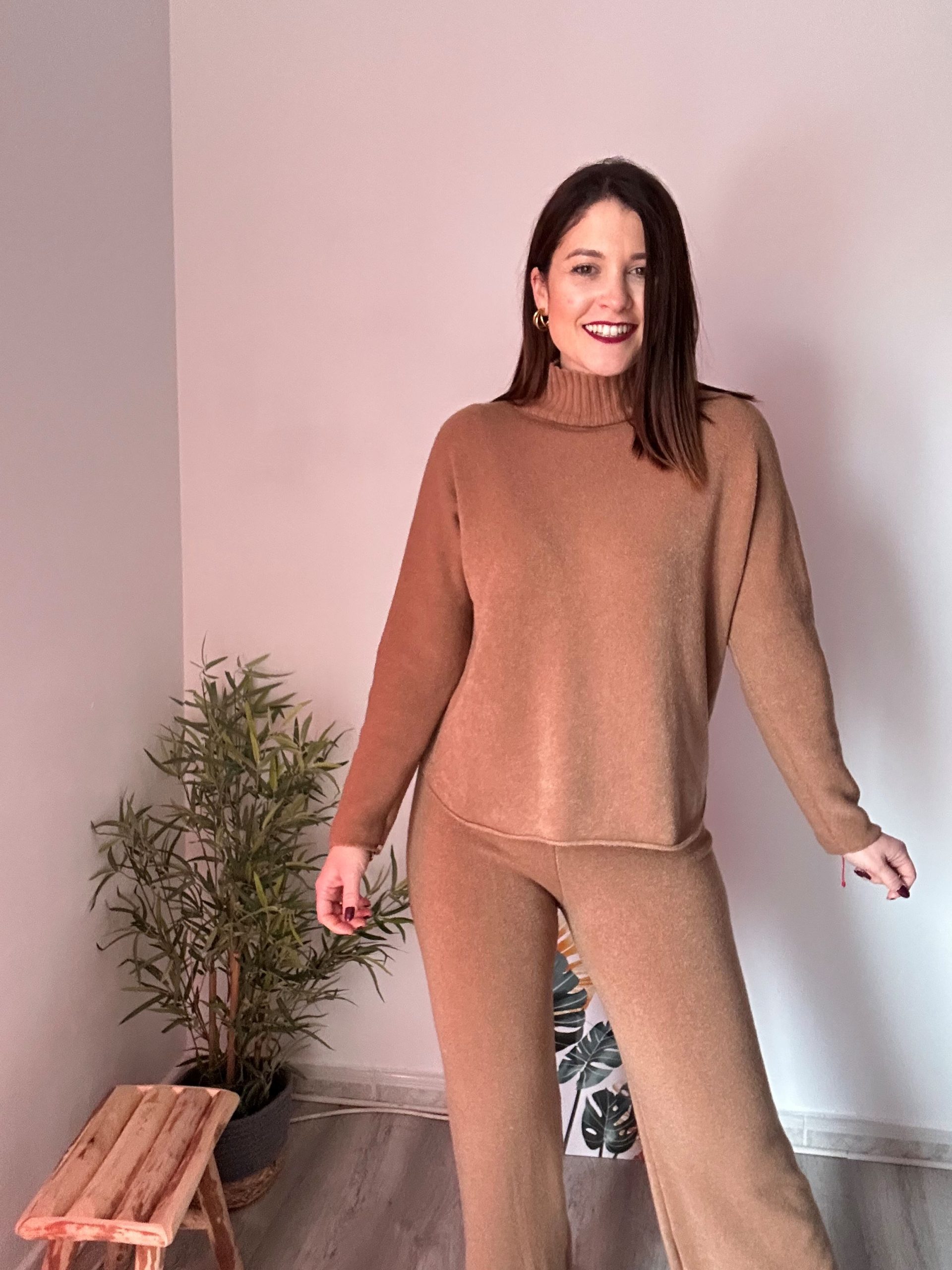 Estos conjuntos están confeccionados en un tejido de punto suave y muy gustoso, perfecto para los meses más frescos. Su tacto calentito aporta confort desde el primer momento, convirtiéndolos en una opción imprescindible para tu fondo de armario. El jersey con cuello chimenea añade un toque moderno y elegante, además de proteger del frío sin necesidad de complementos extra.