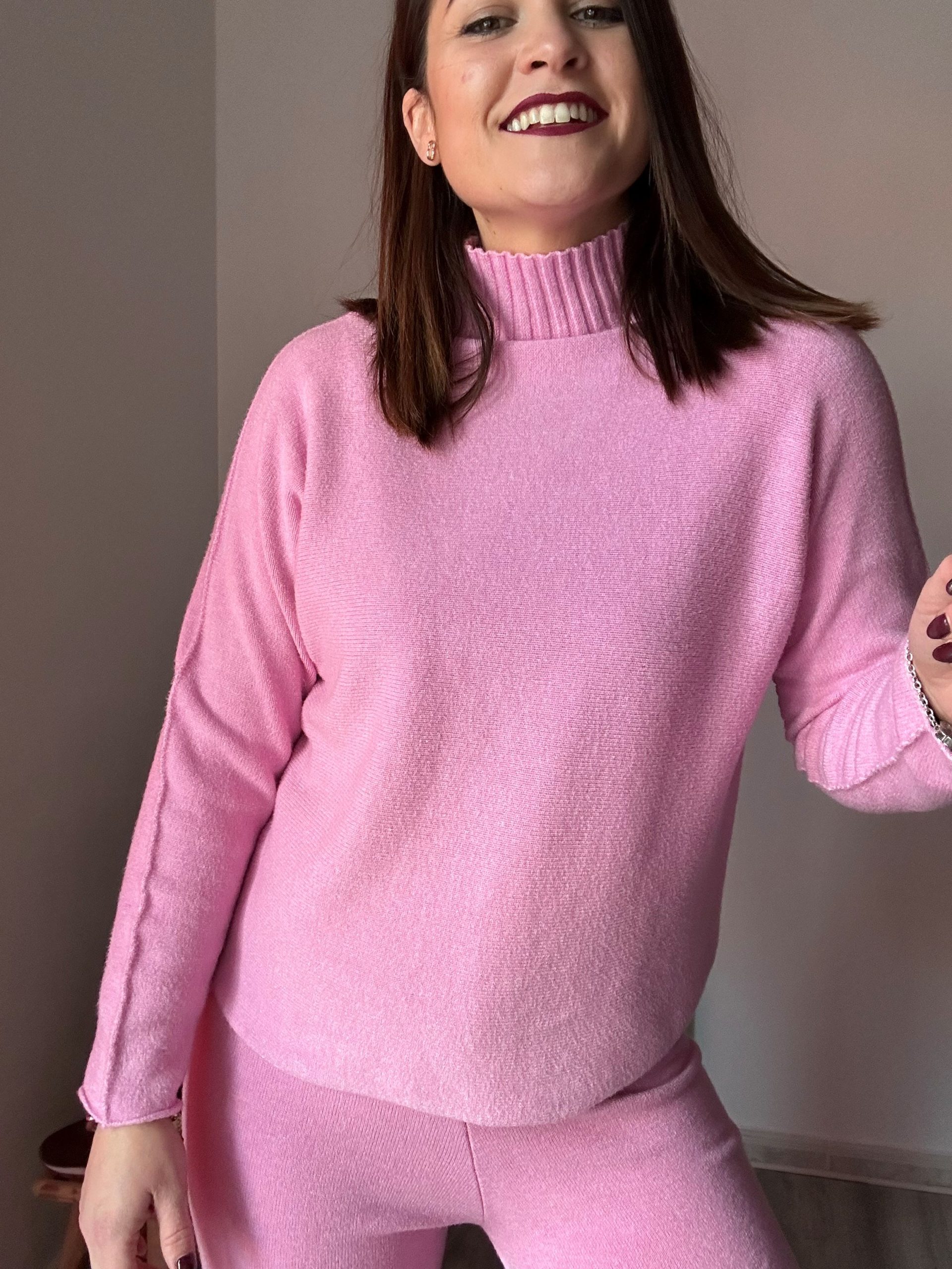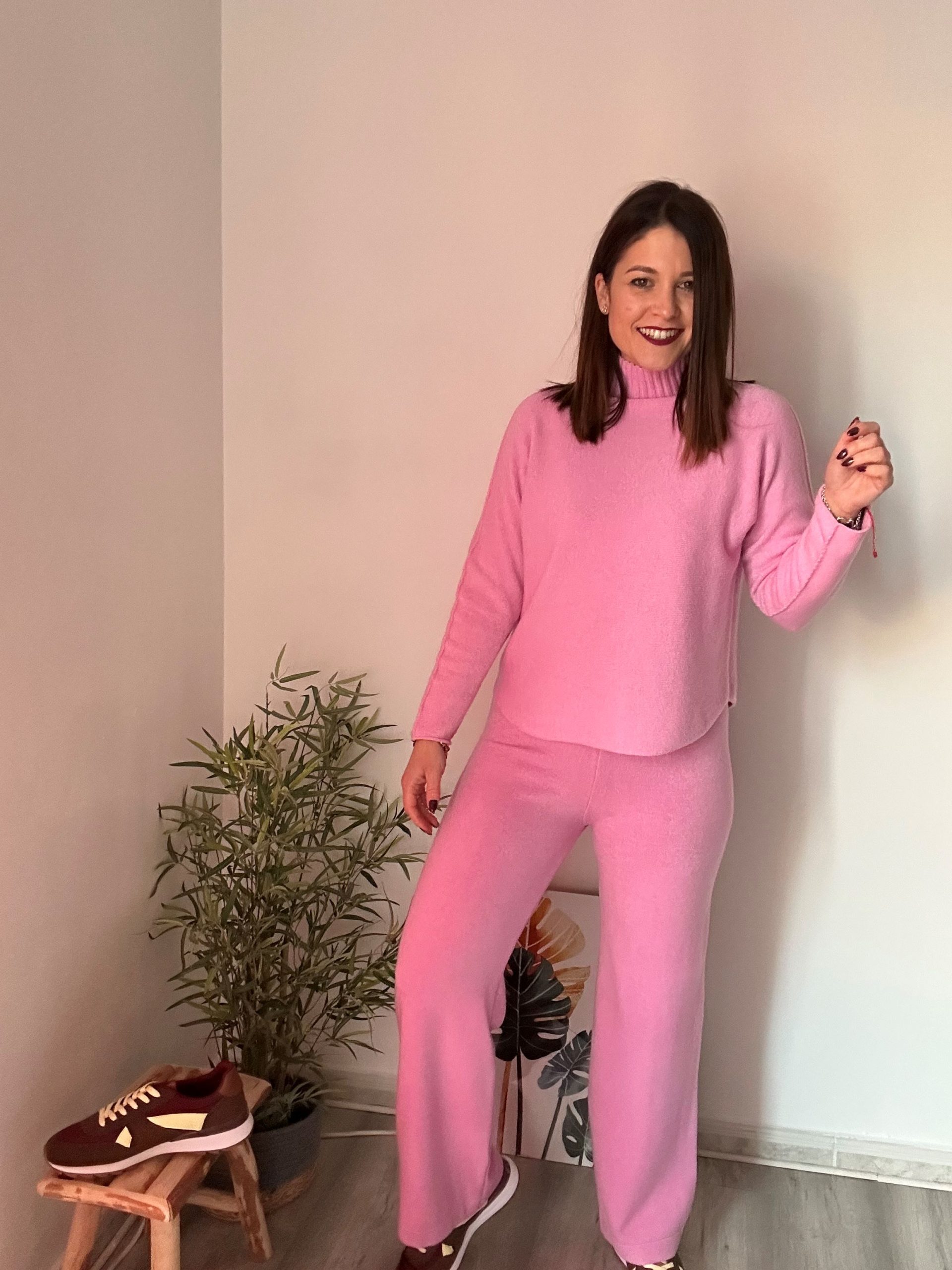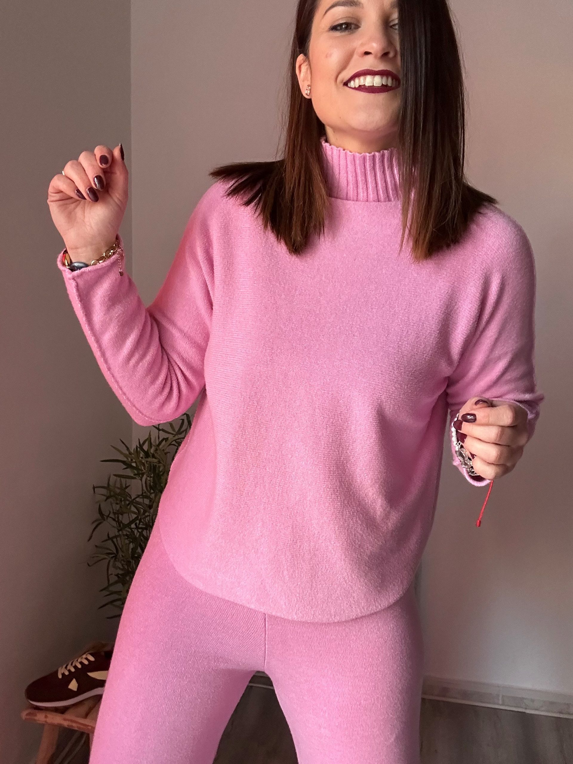 Estos conjuntos están confeccionados en un tejido de punto suave y muy gustoso, perfecto para los meses más frescos. Su tacto calentito aporta confort desde el primer momento, convirtiéndolos en una opción imprescindible para tu fondo de armario. El jersey con cuello chimenea añade un toque moderno y elegante, además de proteger del frío sin necesidad de complementos extra.