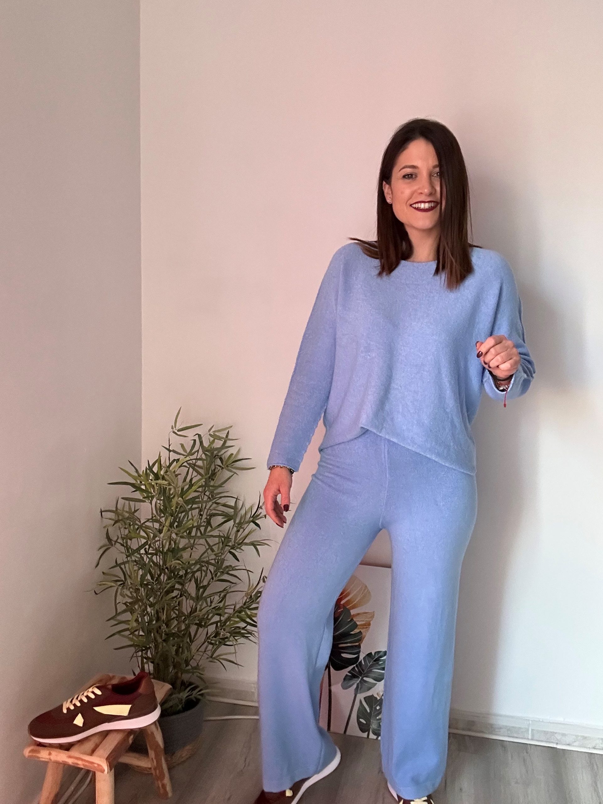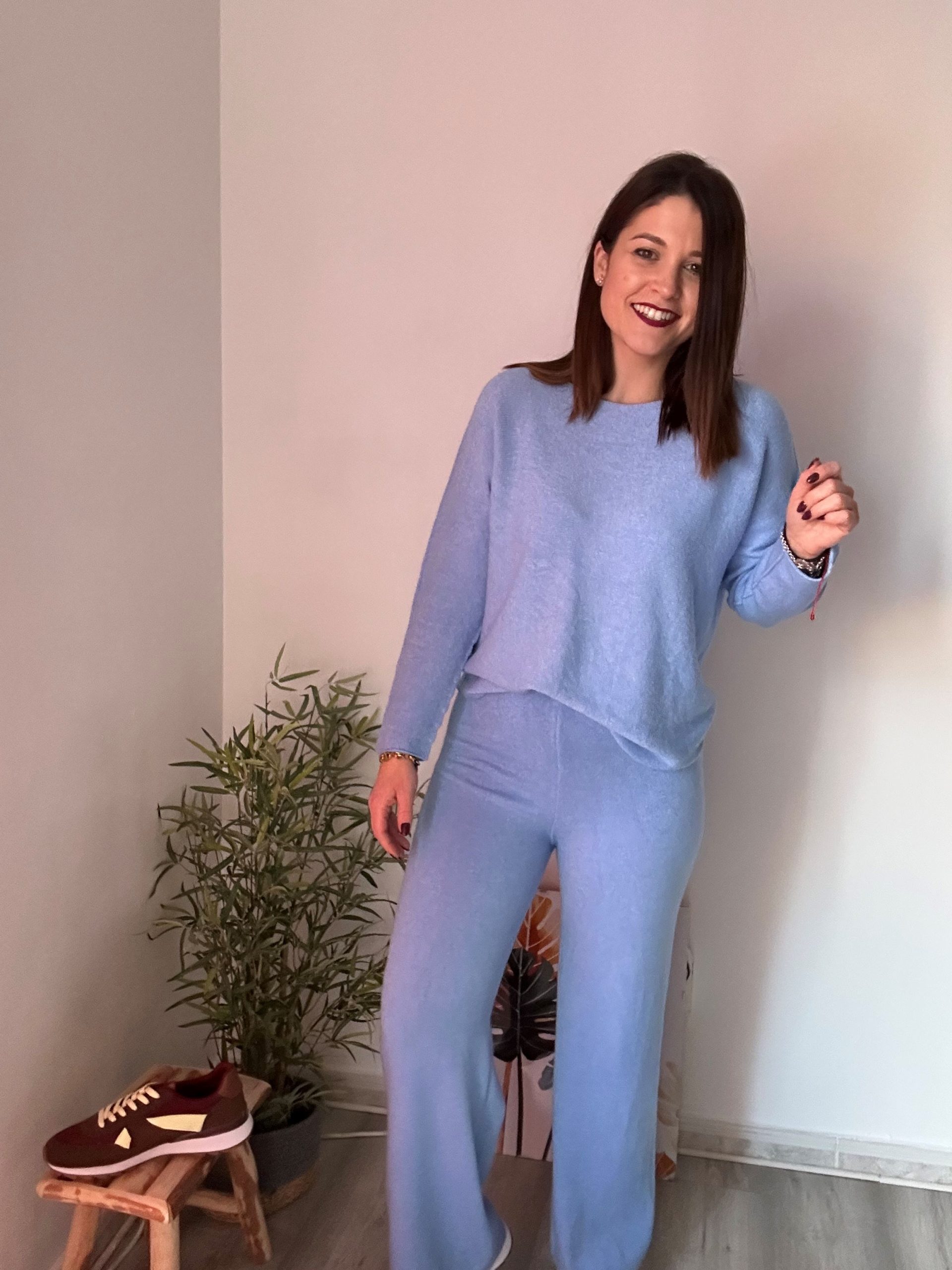Colección de conjuntos de punto suaves y calentitos, con jersey amplio de cuello redondo y pantalón con cintura elástica. Diseñados para ofrecer comodidad y estilo a diario.