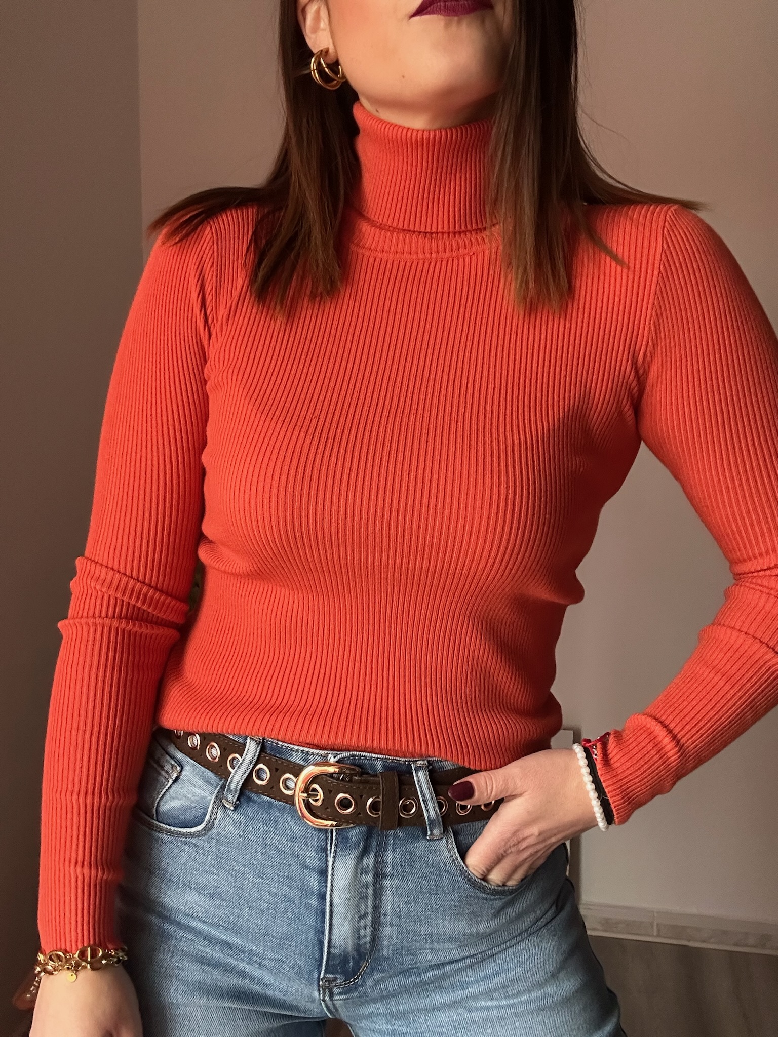 Disponible tanto en nuestra tienda física como en la tienda online, el jersey canalé naranja con cuello vuelto refleja la esencia de La Boutique de Virgo: moda femenina cuidada, atención al detalle y prendas pensadas para mujeres que valoran la calidad y el diseño. Una opción perfecta para renovar tu armario con una prenda cómoda, elegante y atemporal.