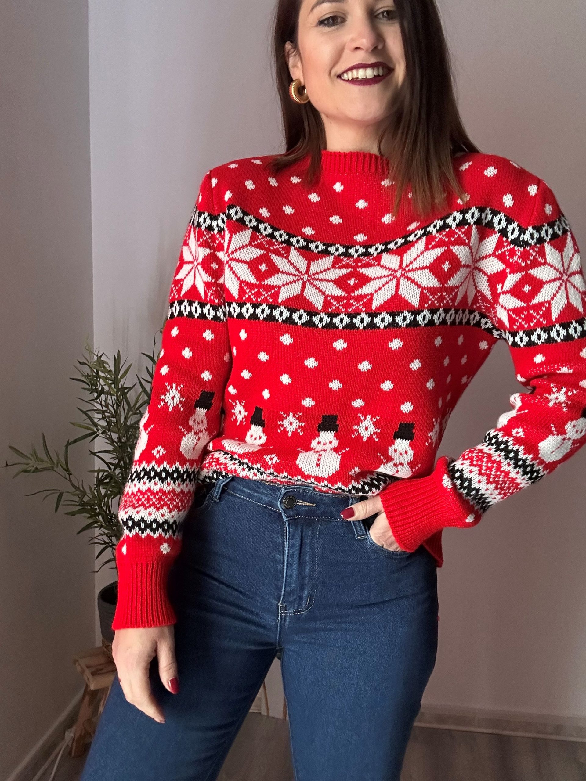 Los diferentes estampados festivos convierten estos jerséis en la opción perfecta para comidas de Navidad, reuniones familiares, eventos informales o simplemente para dar un toque especial a tu look diario durante las fiestas. Puedes combinarlos fácilmente con vaqueros, leggings, faldas o incluso llevarlos con pantalones de vestir para un estilo más sofisticado y divertido a la vez.