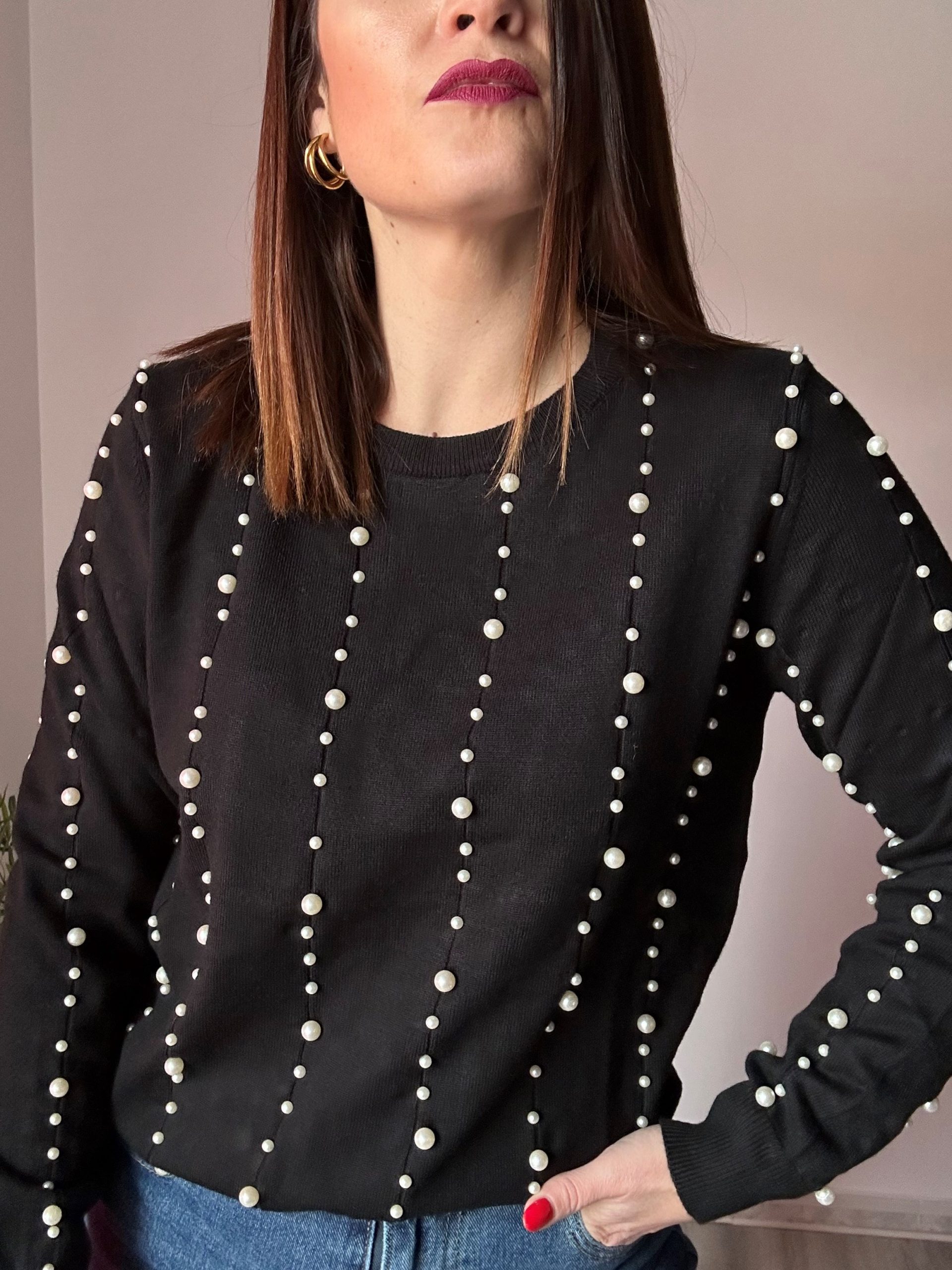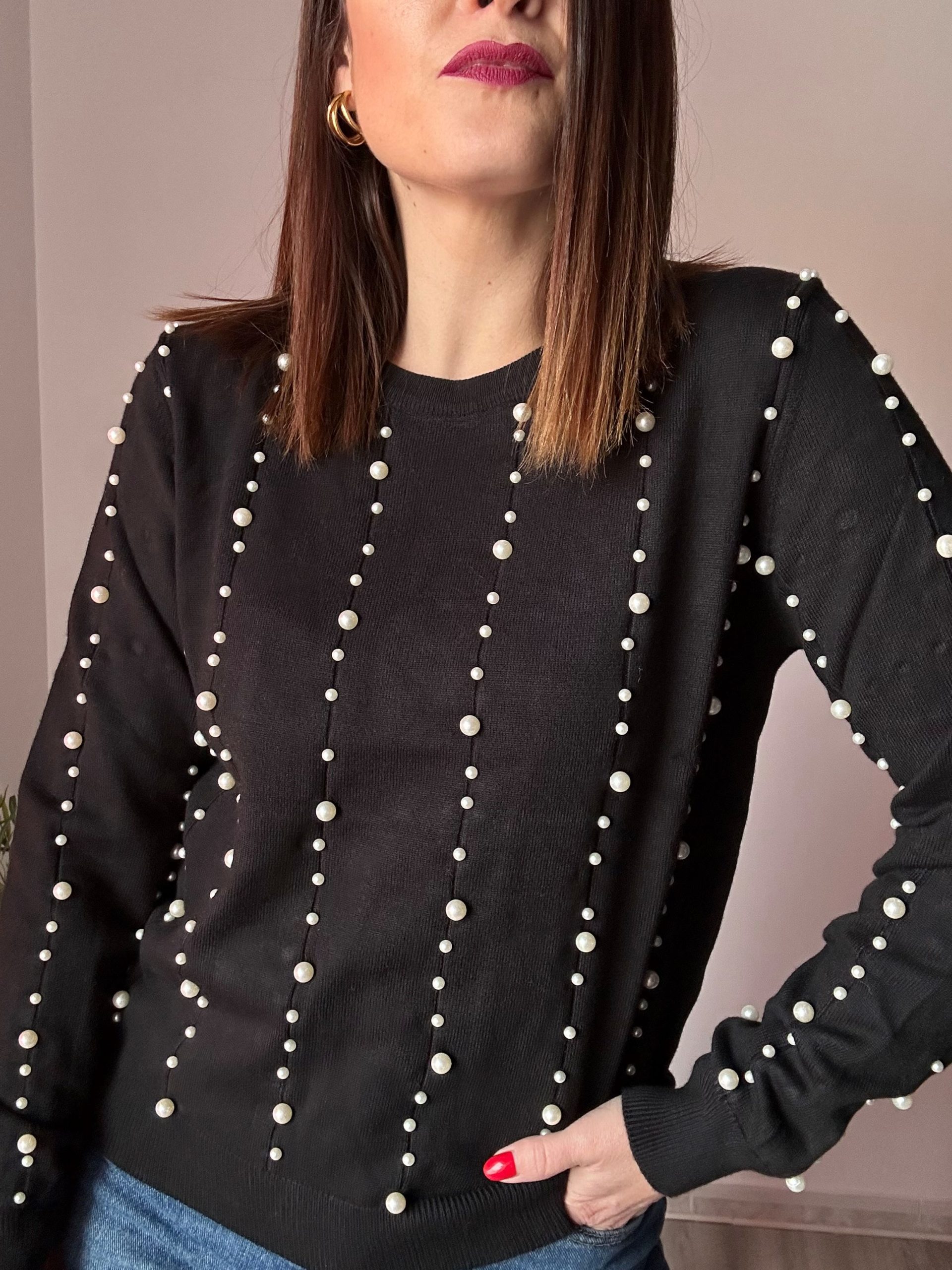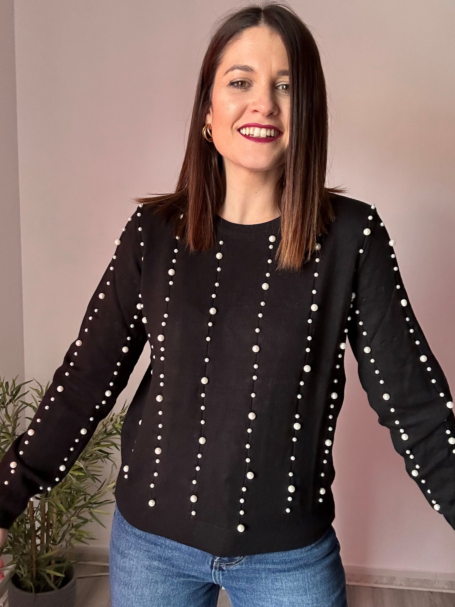 Disponible tanto en tienda física como en tienda online de La Boutique de Virgo, este jersey negro con perlas blancas es una apuesta segura para quienes desean una prenda calentita, femenina y con un detalle original que marque la diferencia.