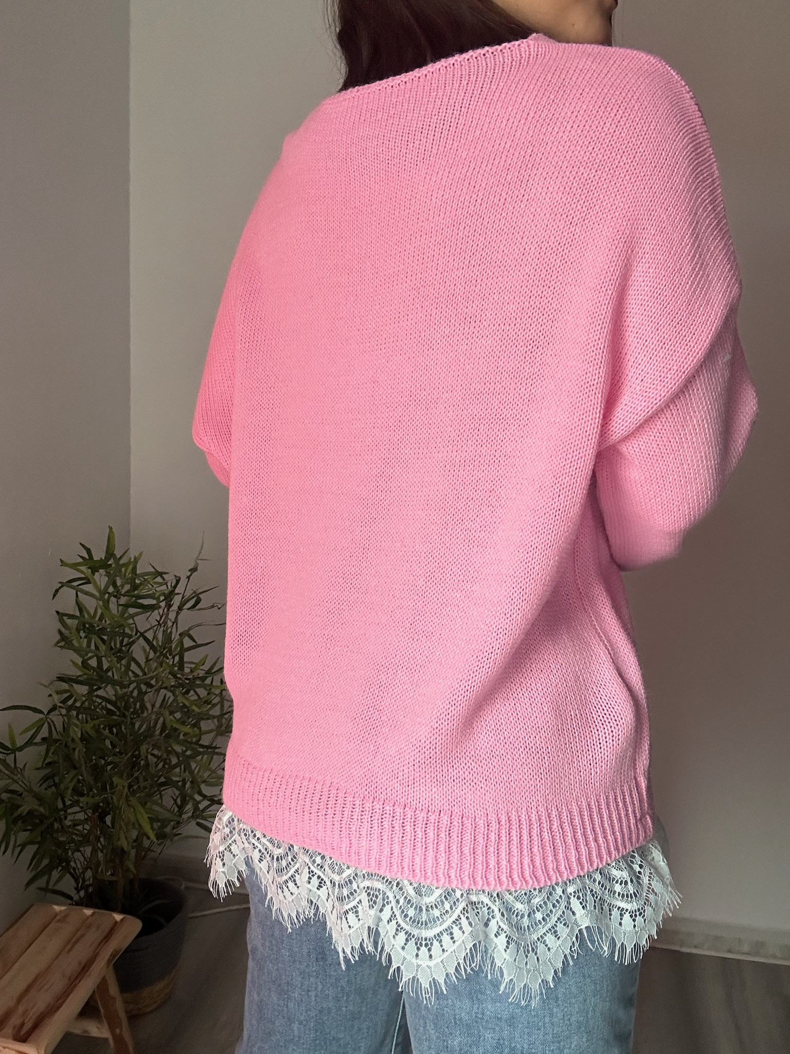 Jersey rosa bajo encaje