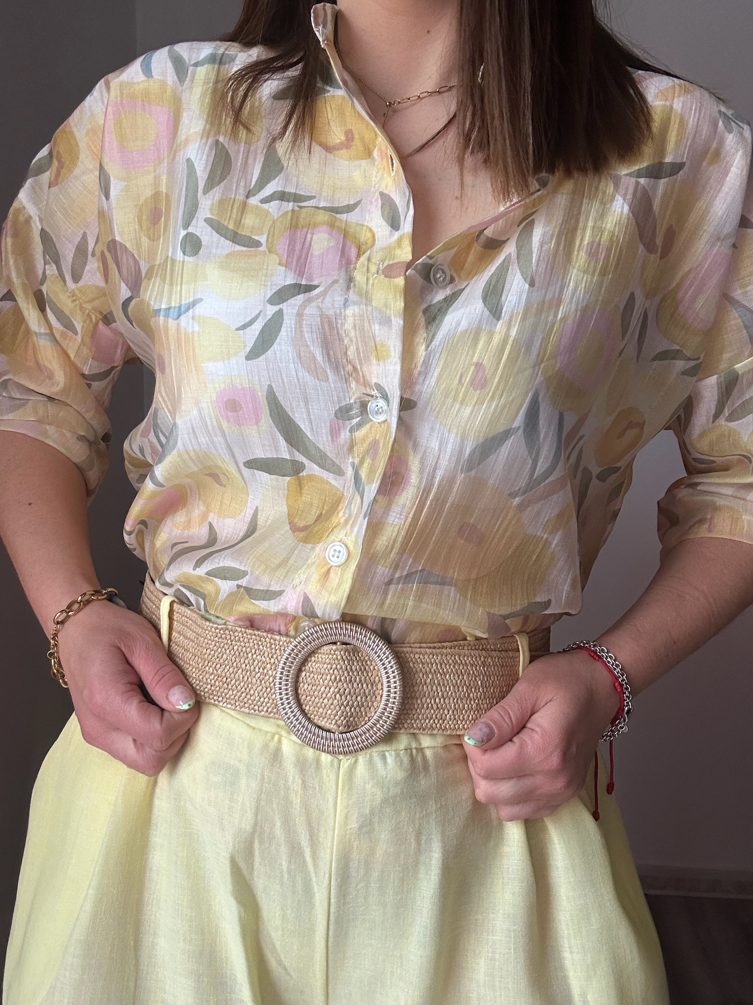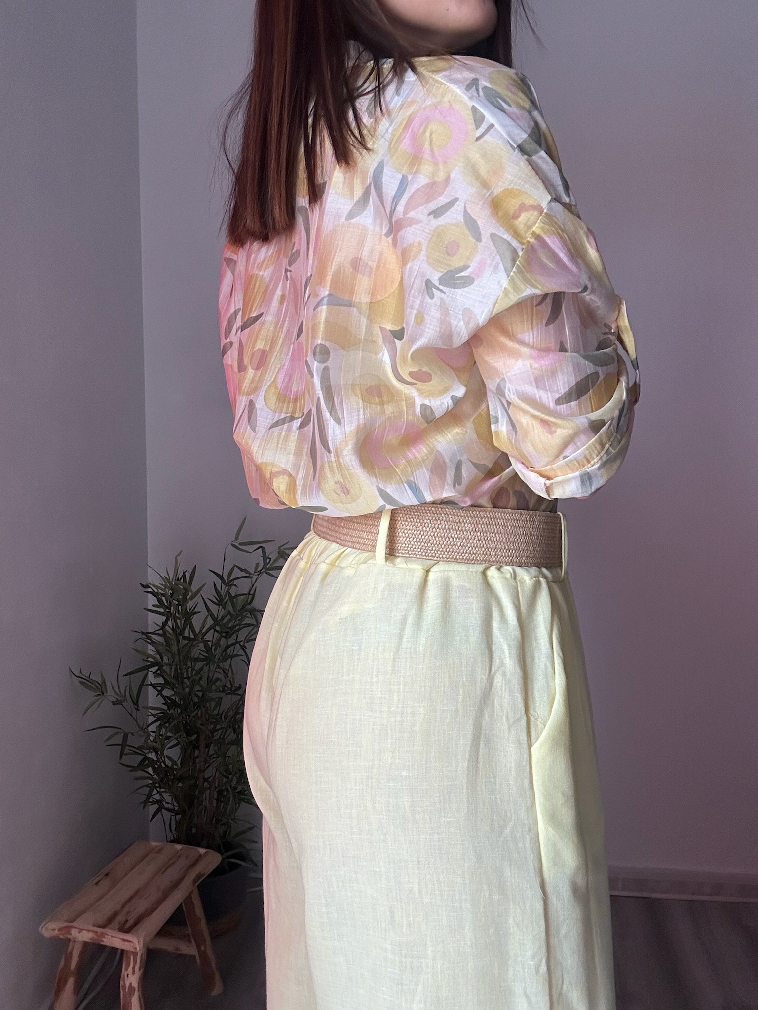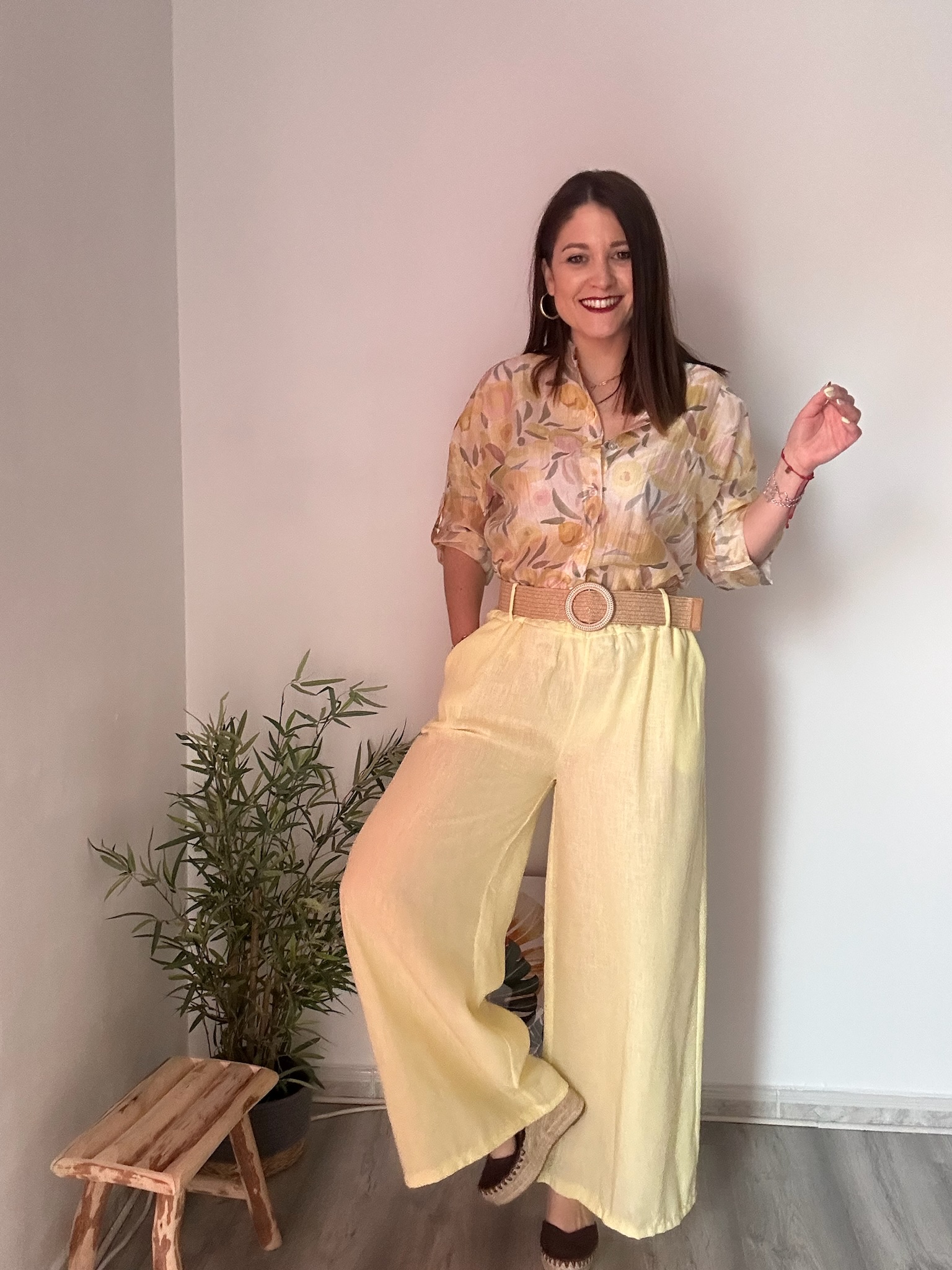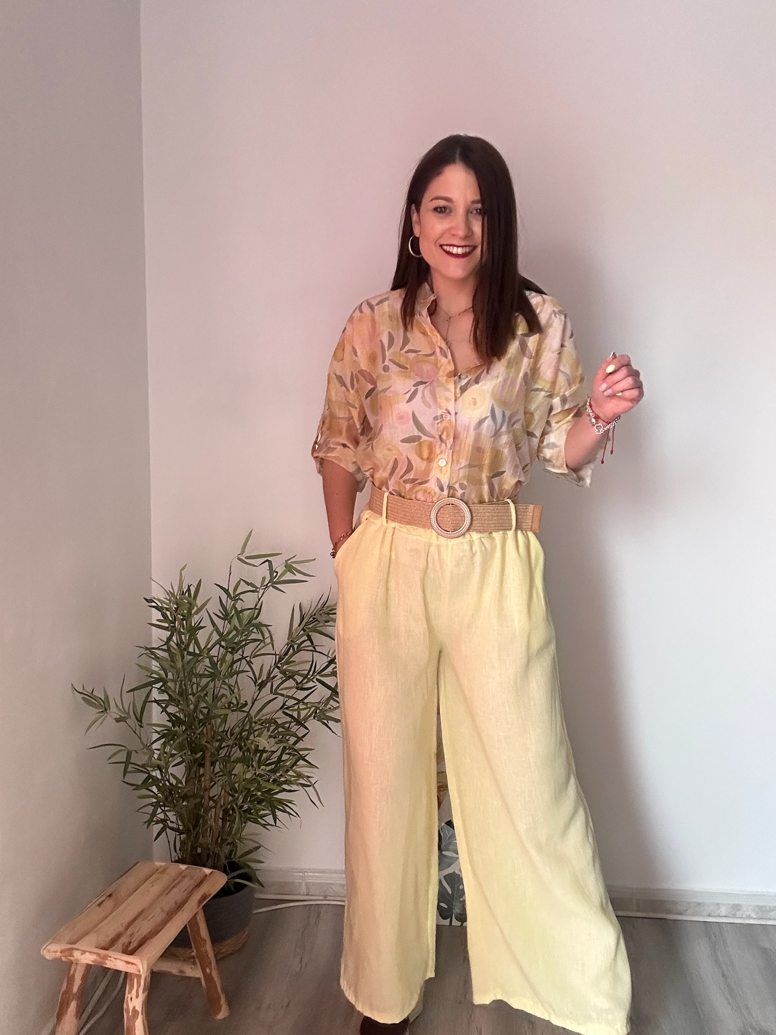 La goma en la cintura proporciona un ajuste cómodo y adaptable, favoreciendo diferentes tipos de silueta. Además, incorpora bolsillos laterales que aportan funcionalidad sin renunciar al estilo. Como detalle diferencial, incluye un cinturón de rafia con hebilla dorada, que añade un toque natural y elegante, elevando el conjunto con un aire moderno y sofisticado.
