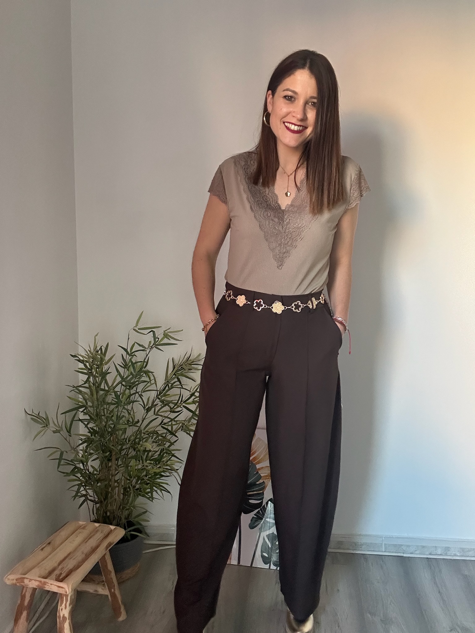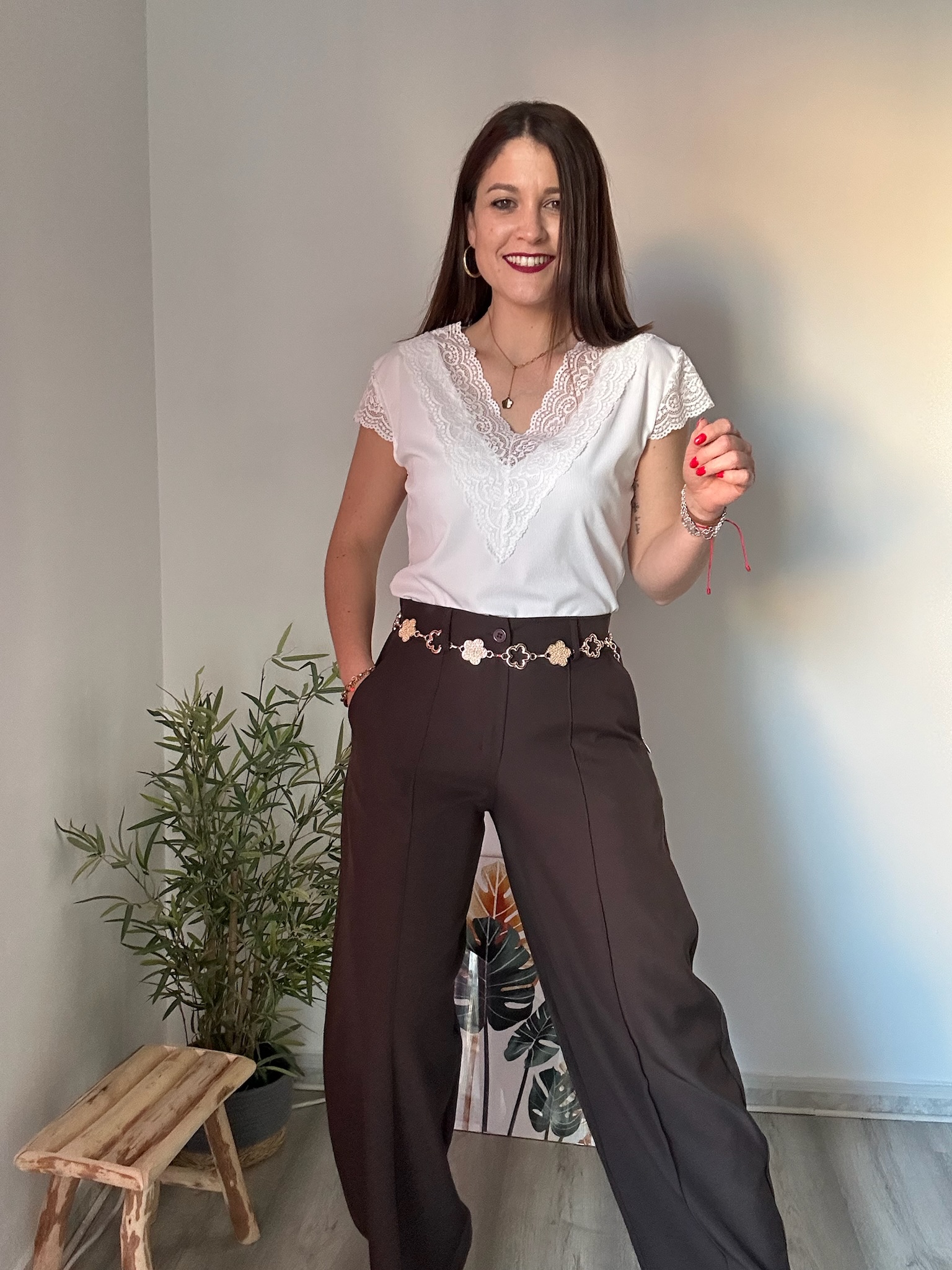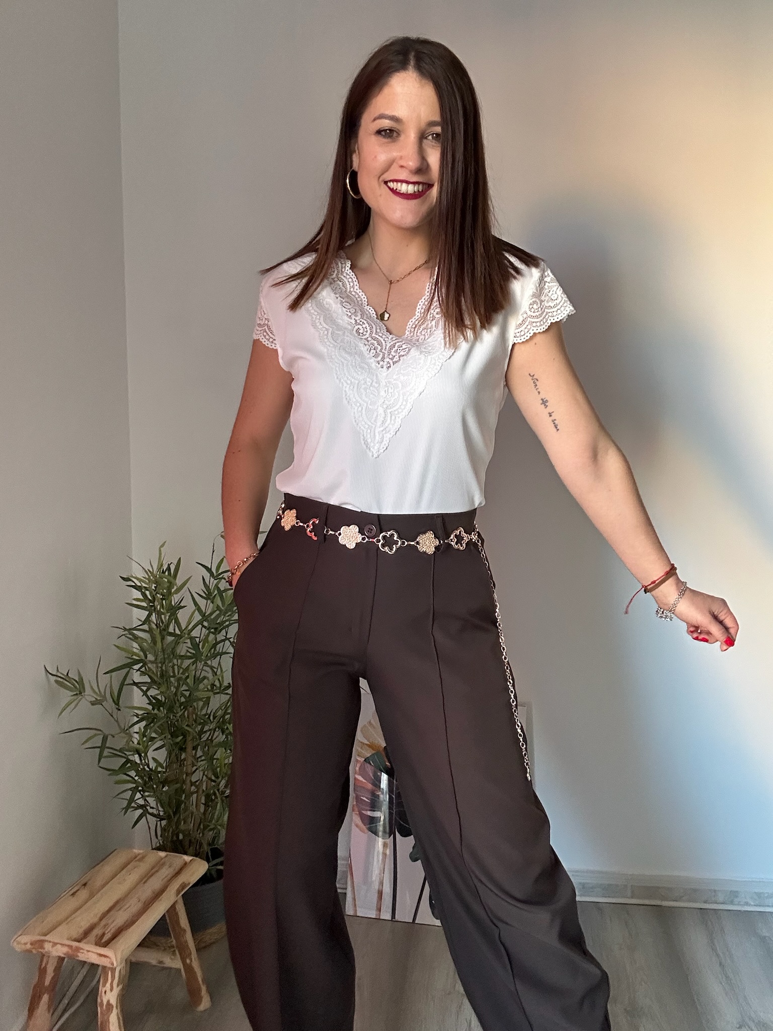 Este pantalón destaca por su detalle de costura en la parte delantera, que añade un toque elegante y sofisticado, ideal tanto para looks casuales como para outfits más arreglados. Además, incorpora dos bolsillos laterales funcionales, perfectos para el día a día.