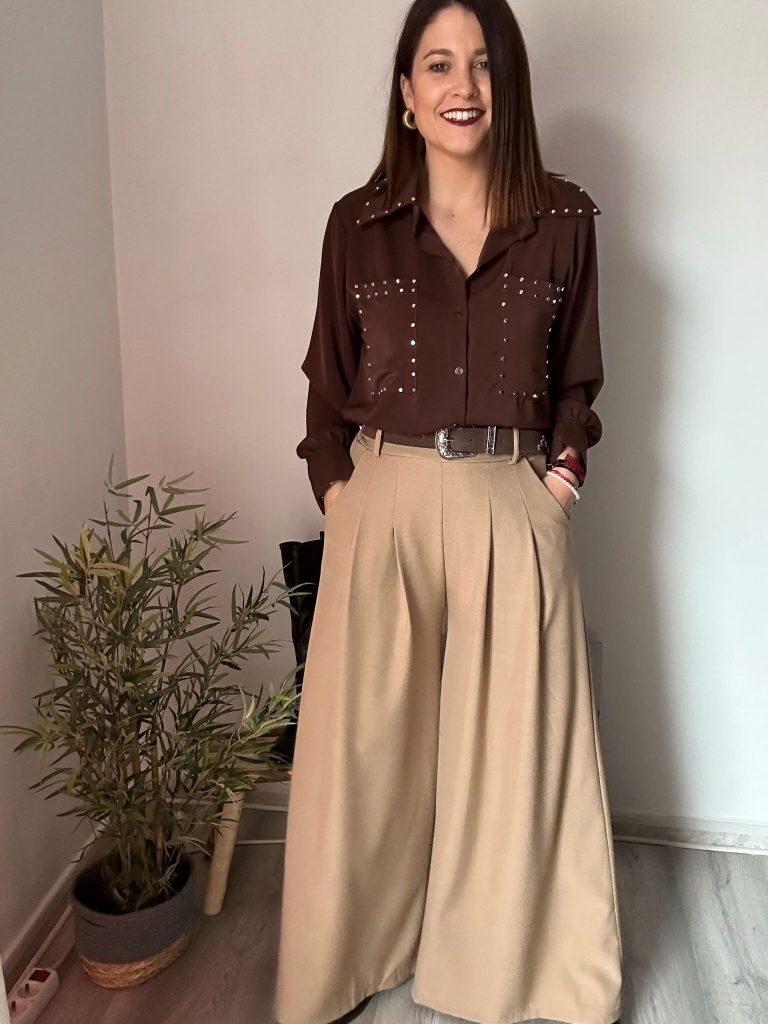 Ya sea con botines, zapatillas o tacones, este pantalón camel realza cualquier look aportando ese aire sofisticado y moderno que tanto gusta. Una prenda cómoda, práctica y con mucho estilo que se adapta a la rutina diaria sin renunciar a la elegancia.