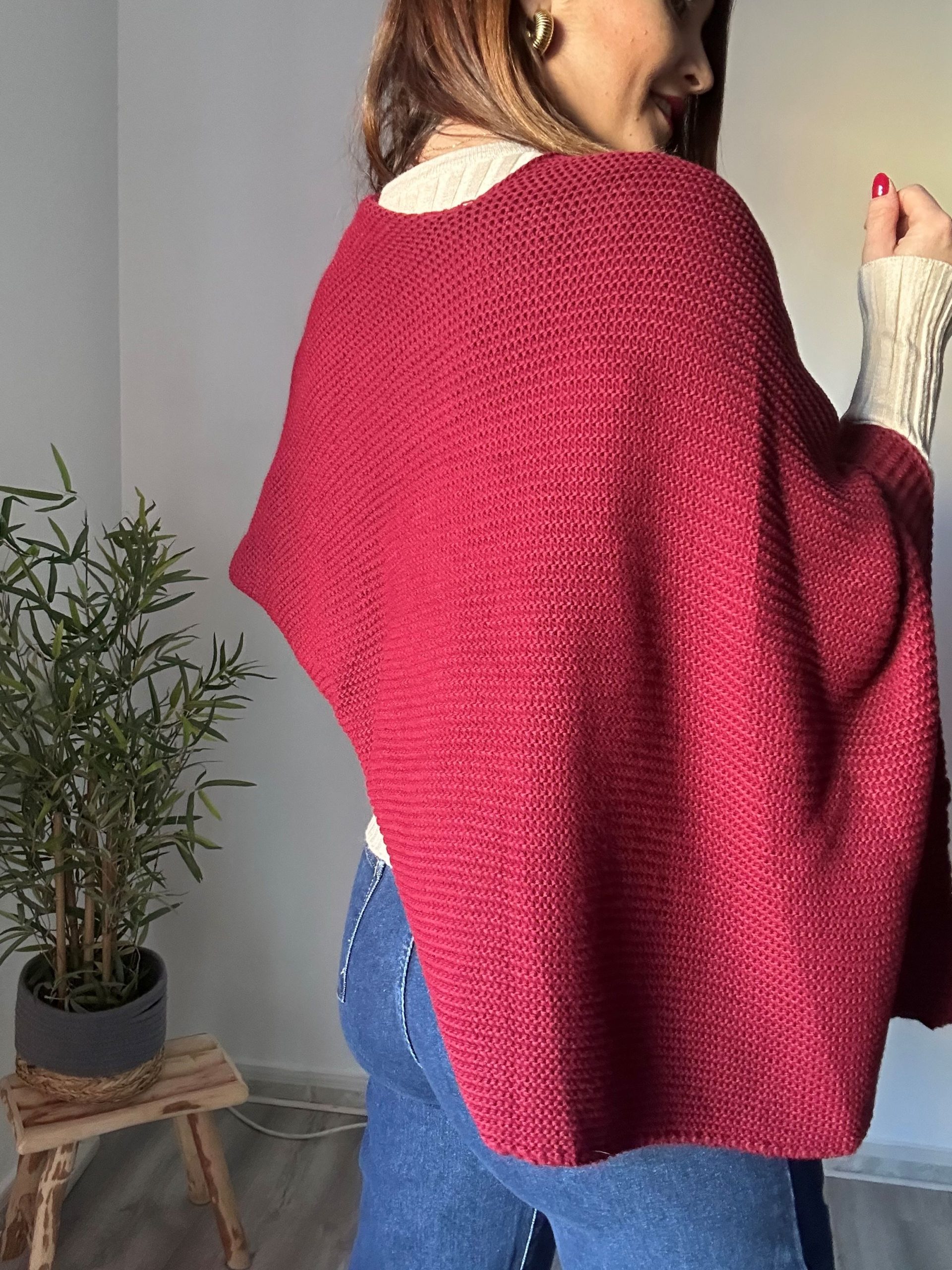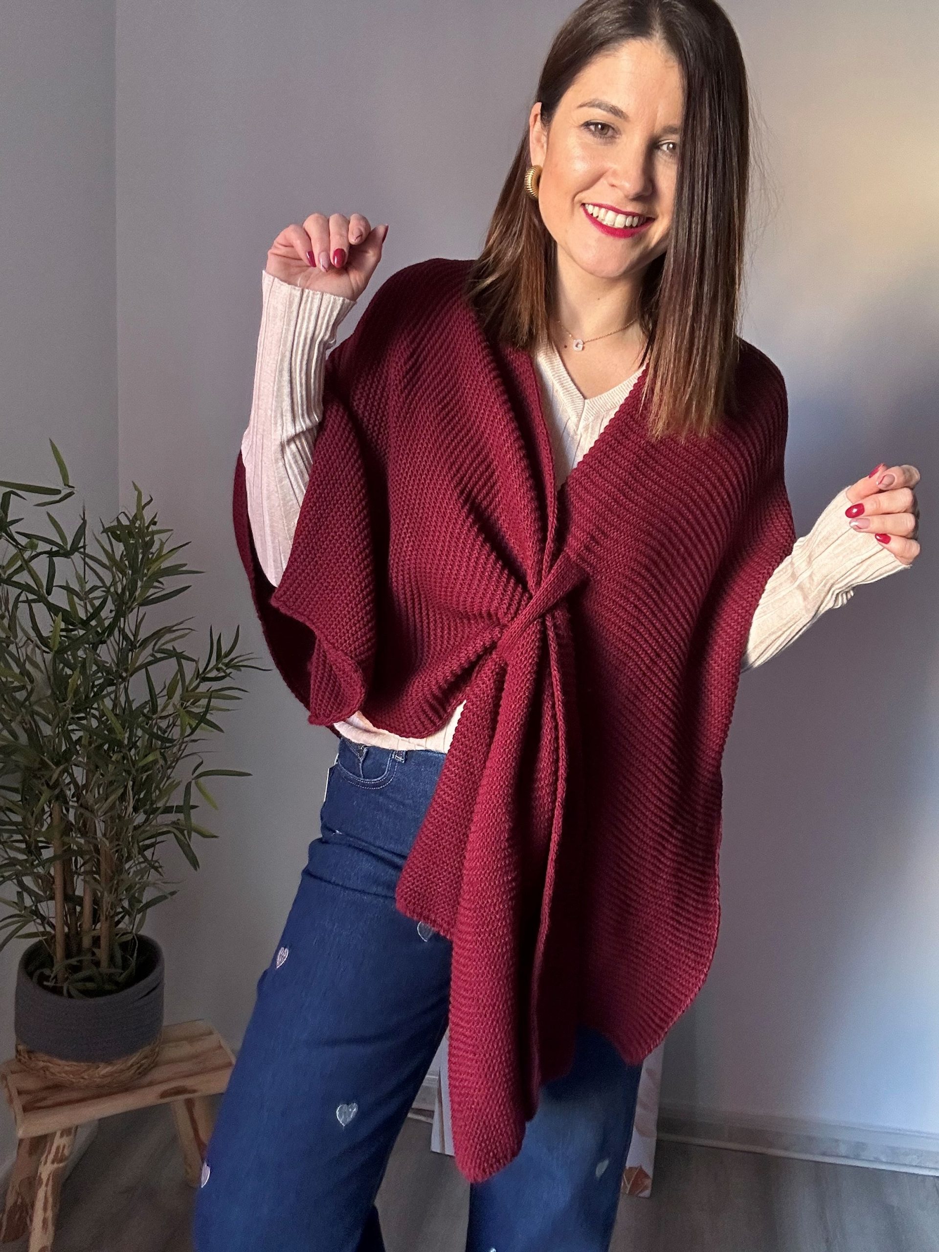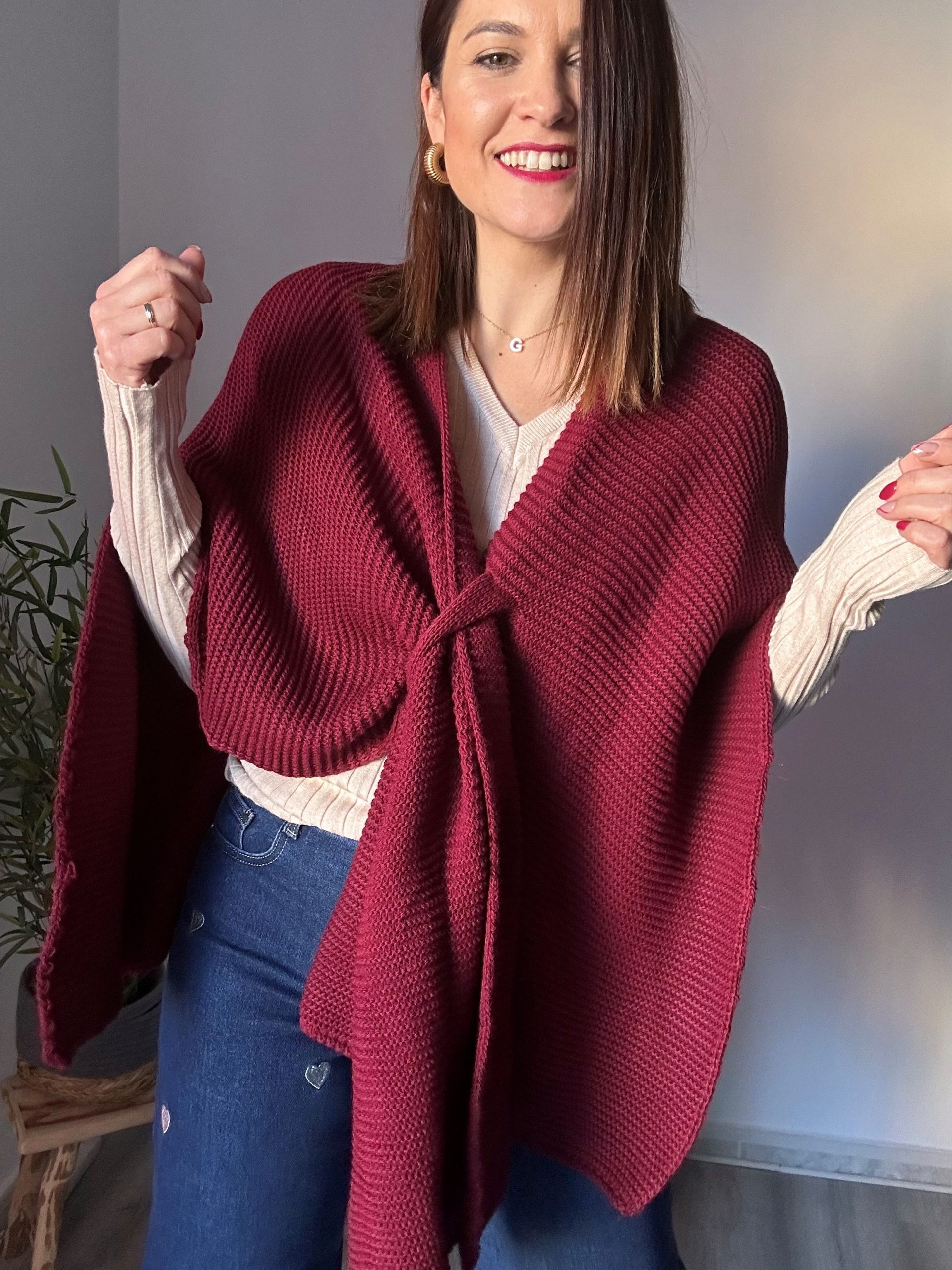 Poncho burdeos con tejido de jersey, adaptable a todas las tallas