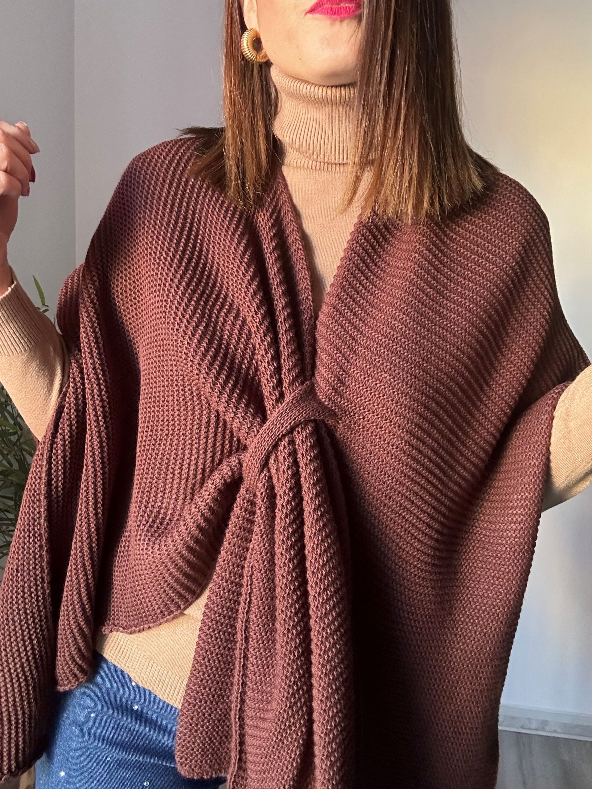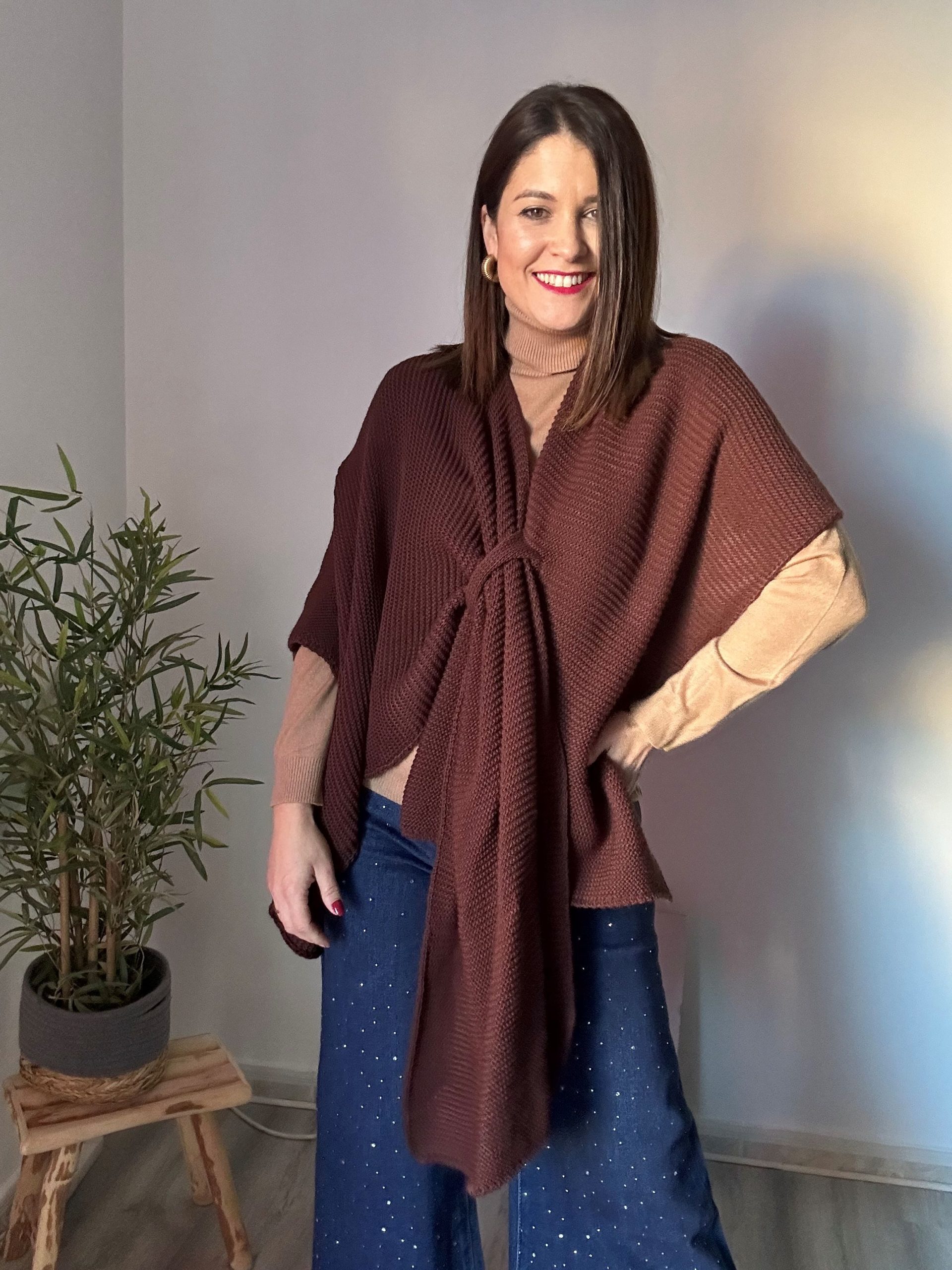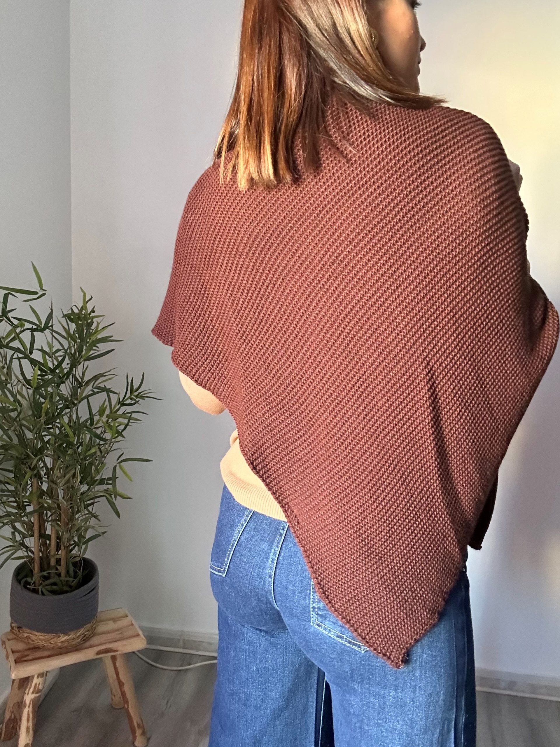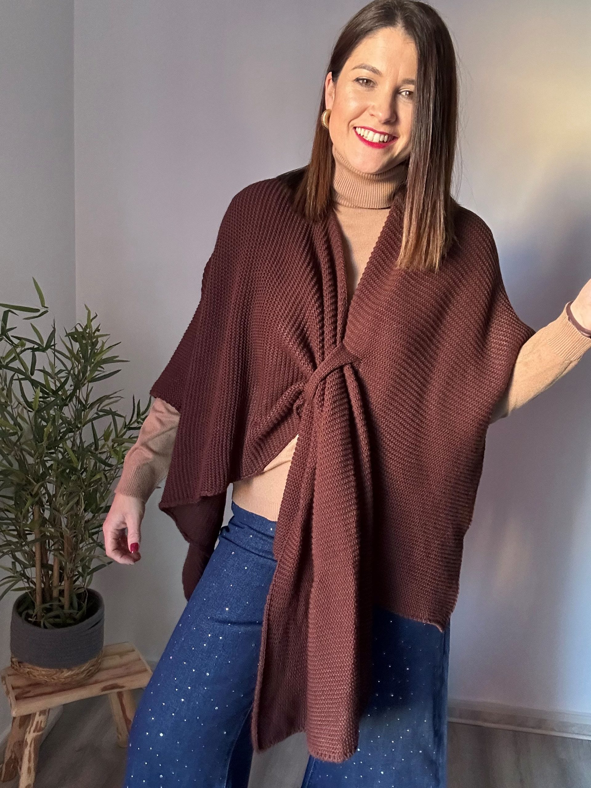 Poncho marrón con tejido de jersey, adaptable a todas las tallas