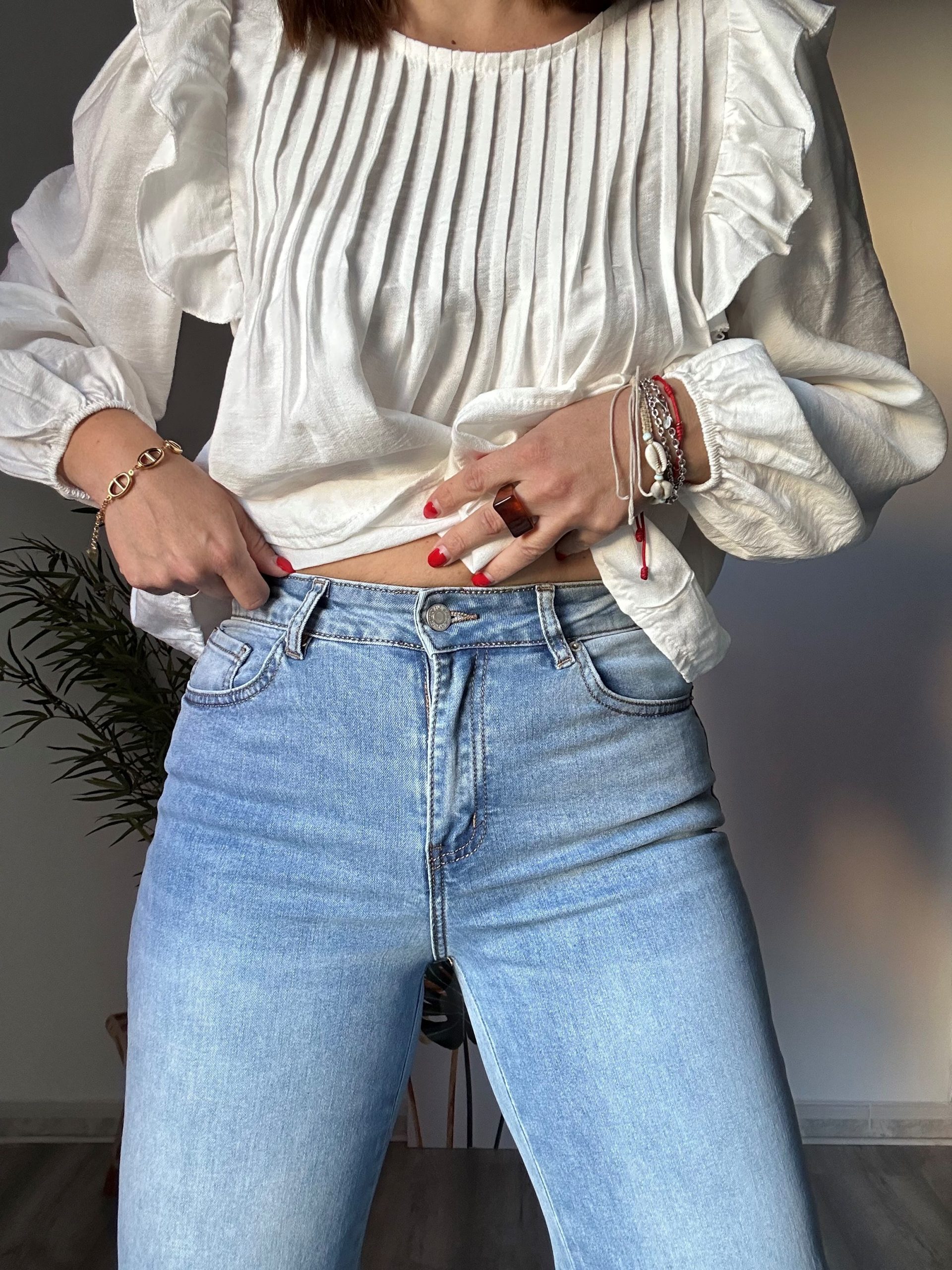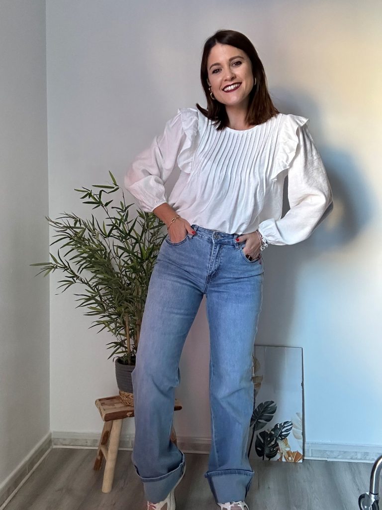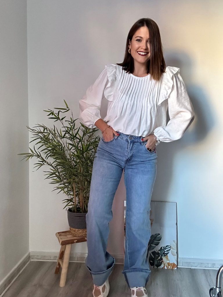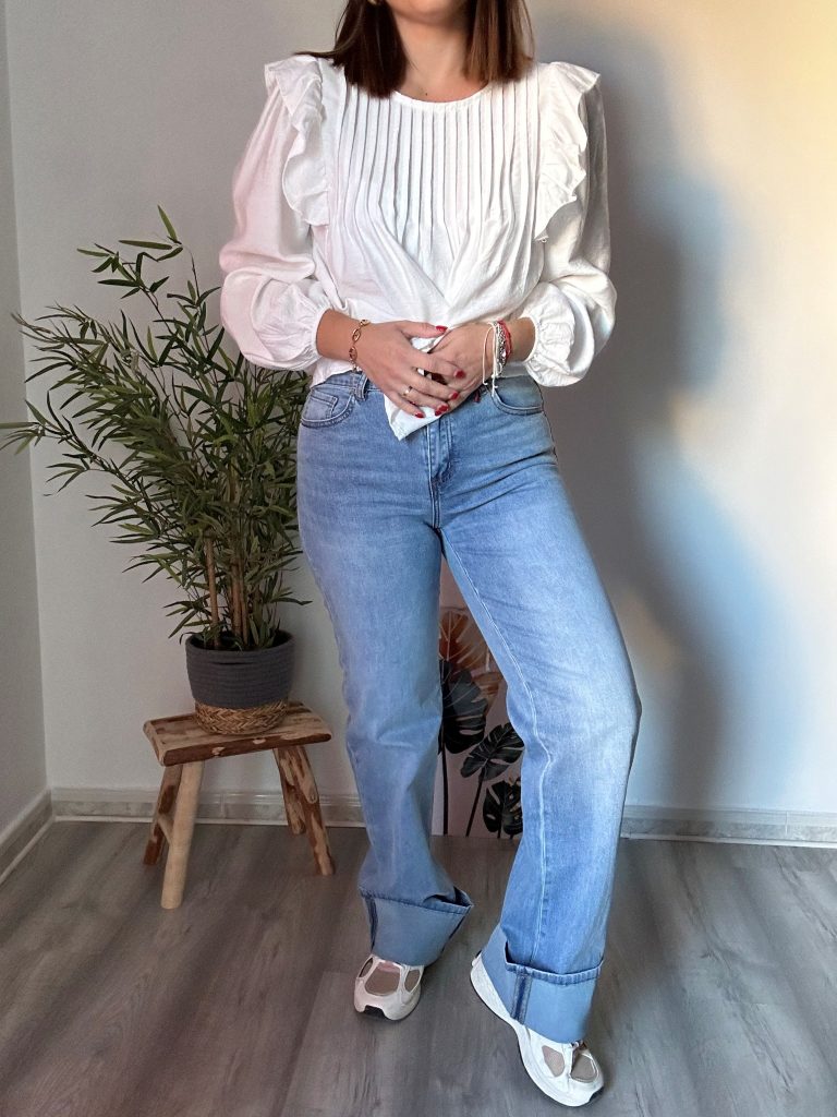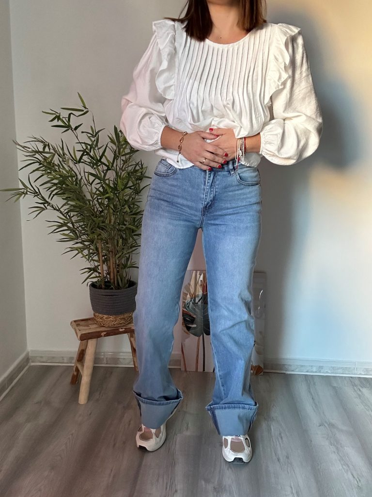 El vaquero en color clarito con bajo vuelto es la prenda imprescindible que combina comodidad, estilo y versatilidad en un solo diseño. Pensado para mujeres que buscan un look actual sin renunciar a la practicidad, este pantalón es una apuesta segura para crear conjuntos tanto casuales como más sofisticados.
