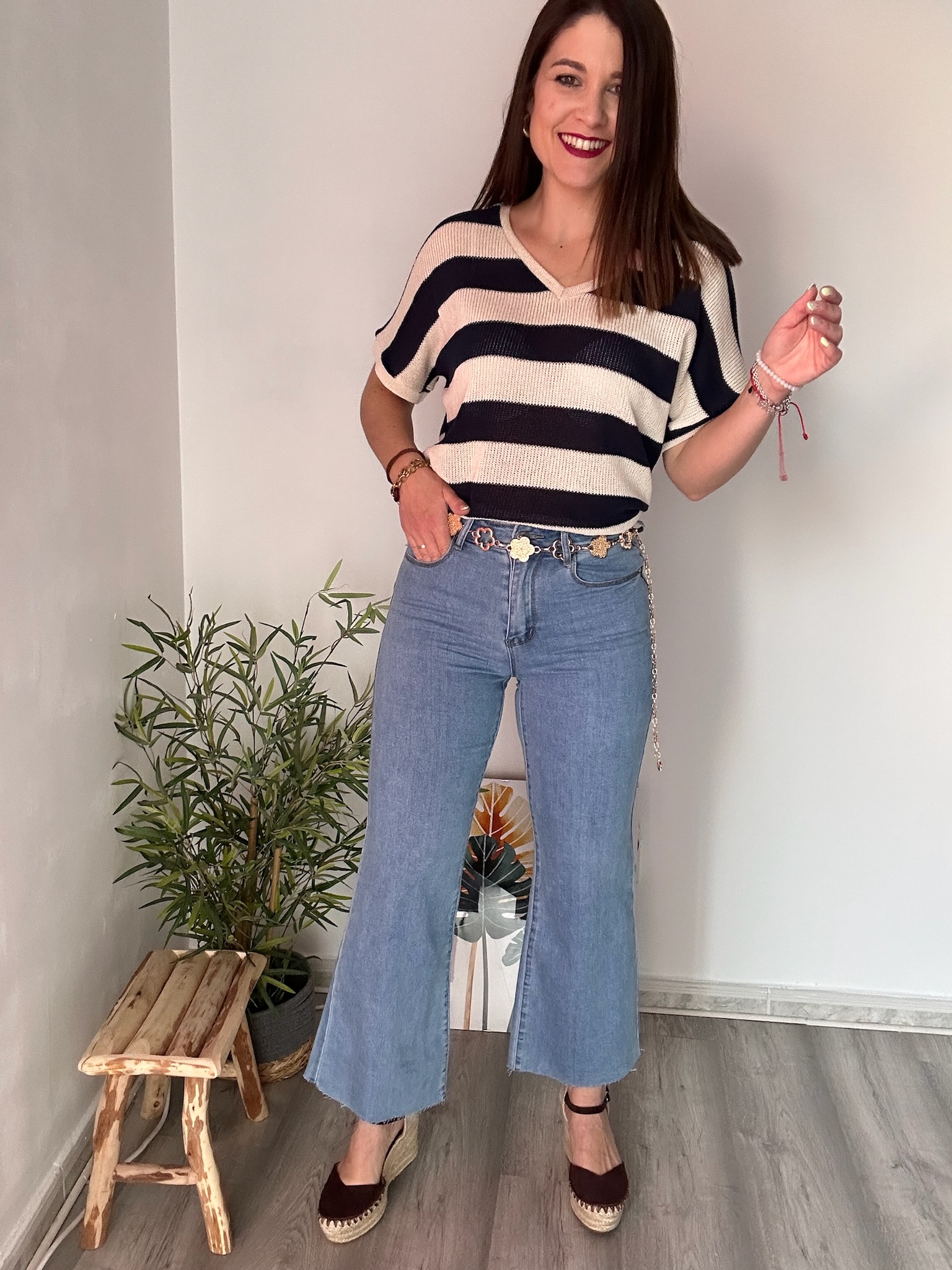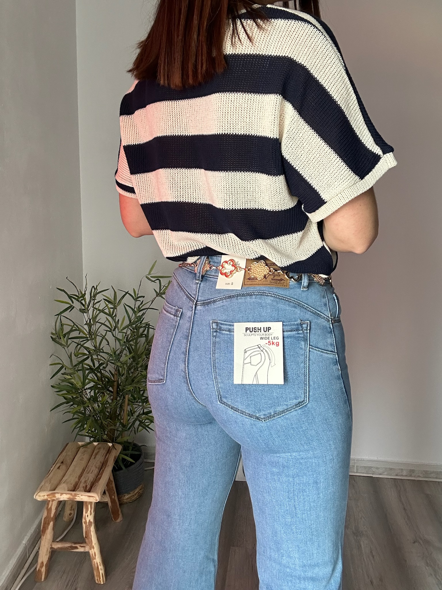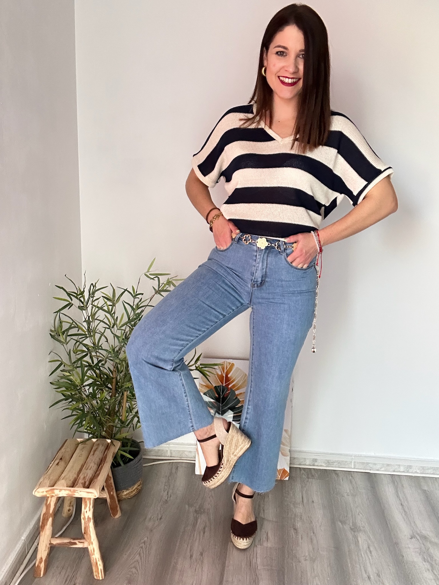 El corte flare vuelve a ser tendencia en moda femenina porque aporta un toque moderno y favorecedor. Además, este jean push up estiliza la silueta, ayudando a equilibrar las proporciones del cuerpo y aportando un efecto visual que alarga las piernas, especialmente si se combina con botines o zapatos de tacón.