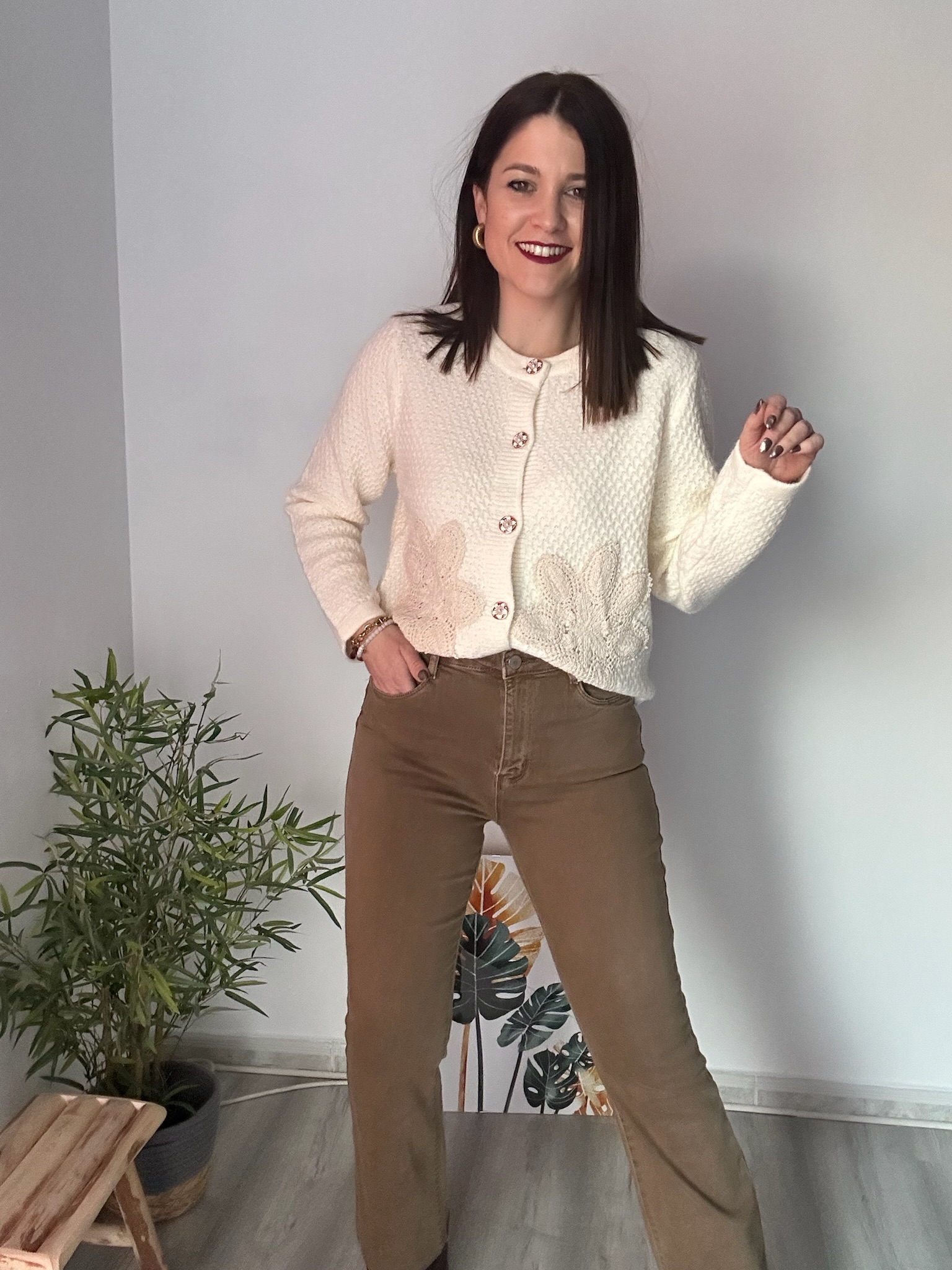 Este vaquero color camel de tiro alto es una opción ideal para quienes buscan un básico diferente, elegante y fácil de combinar. Su tonalidad camel aporta calidez y sofisticación, convirtiéndolo en una prenda versátil que encaja tanto en looks casuales como en estilismos más cuidados.
