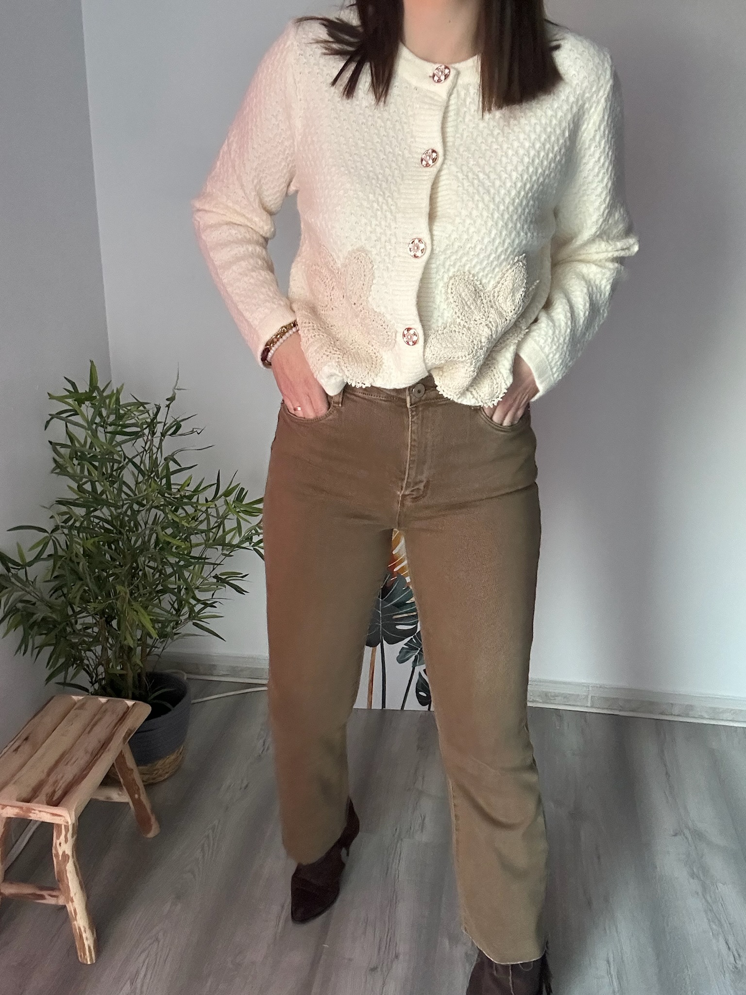 En La Boutique de Virgo apostamos por prendas que unen calidad, diseño y feminidad. Este vaquero camel de tiro alto y bajo láser es una elección acertada para quienes valoran los detalles y buscan renovar su armario con piezas actuales y atemporales.