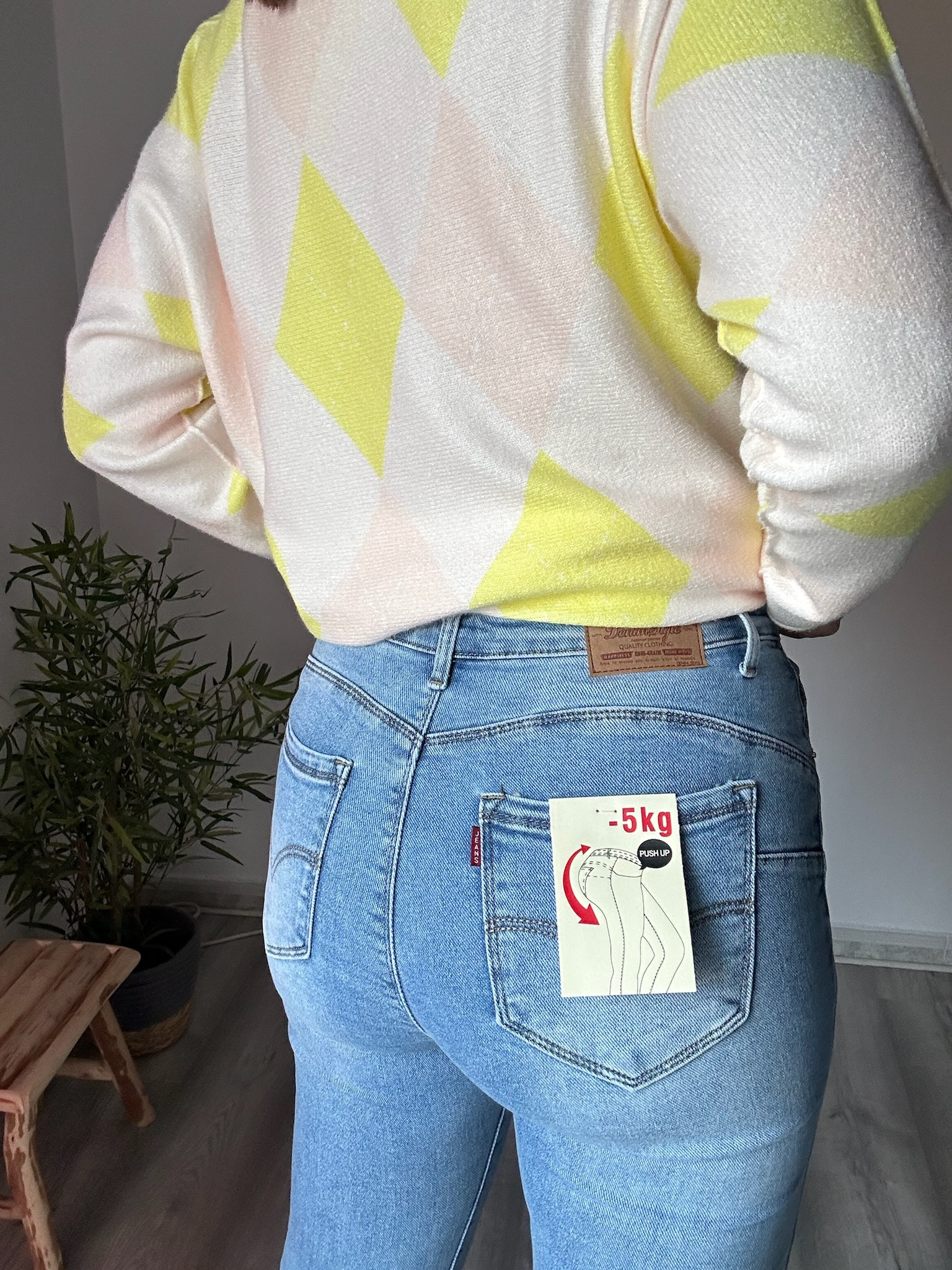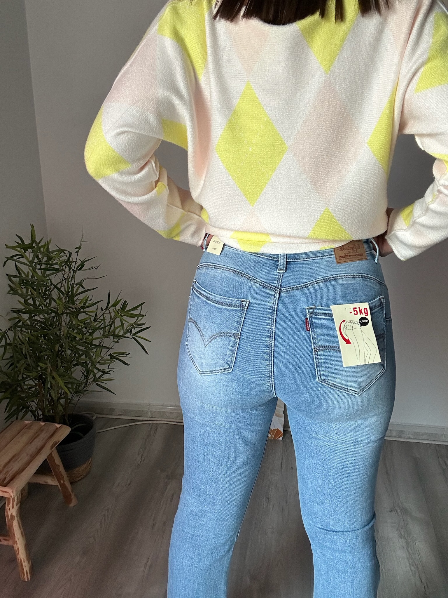 Este vaquero de corte recto para mujer es un imprescindible en cualquier armario gracias a su diseño atemporal y su gran comodidad. Con tiro medio-alto, estiliza la silueta y se adapta perfectamente a la cintura, ofreciendo un ajuste favorecedor para el día a día. Su efecto push up realza de forma natural las curvas, aportando una imagen femenina y actual sin renunciar al confort.