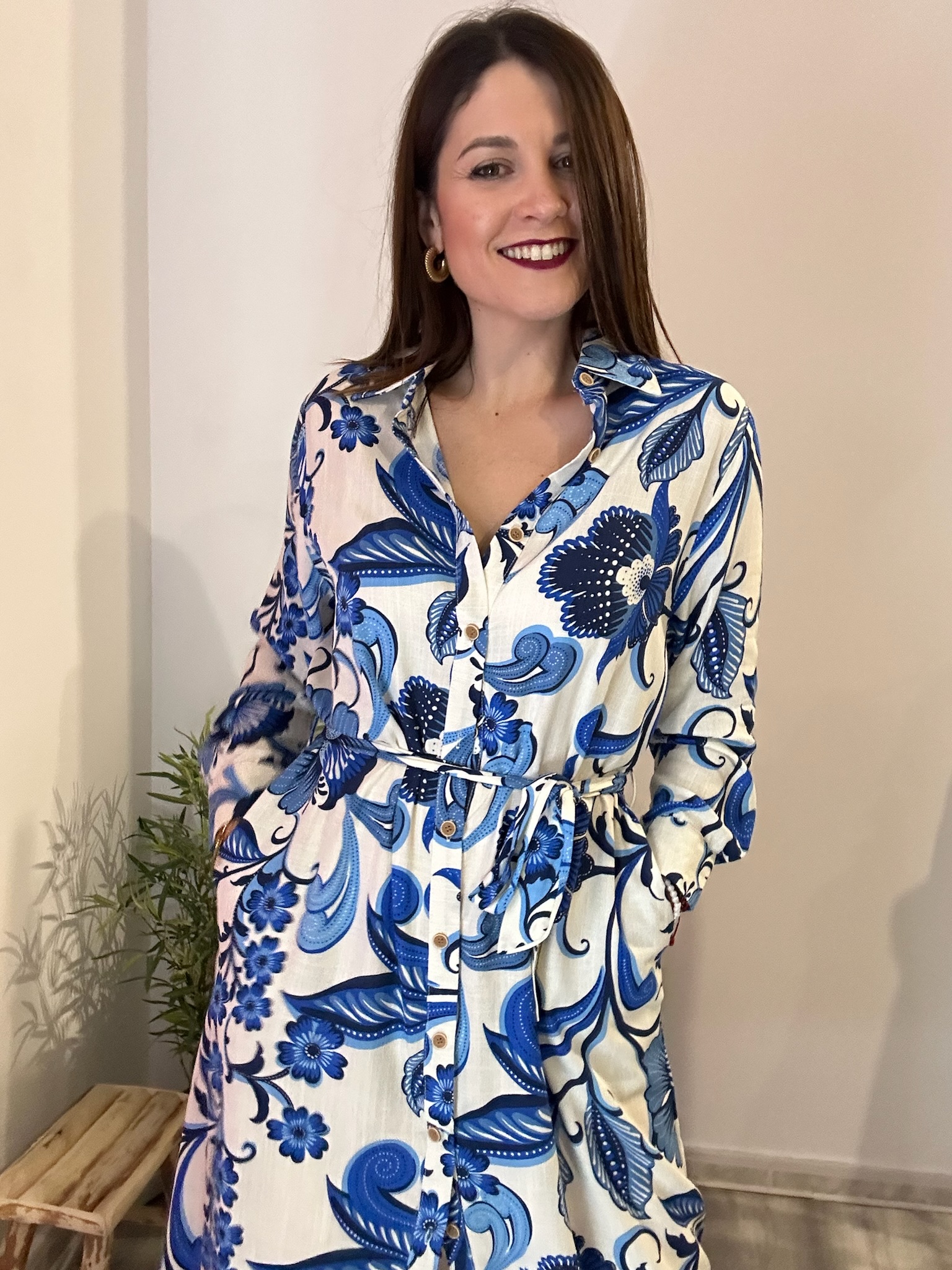 En La Boutique de Virgo, seleccionamos moda femenina que combina comodidad, estilo y tendencia. Este vestido camisero blanco con flores azules, cinturón y bolsillos está disponible tanto en nuestra tienda física como en la tienda online, siendo una pieza clave para mujeres que buscan elegancia y versatilidad en cada look.